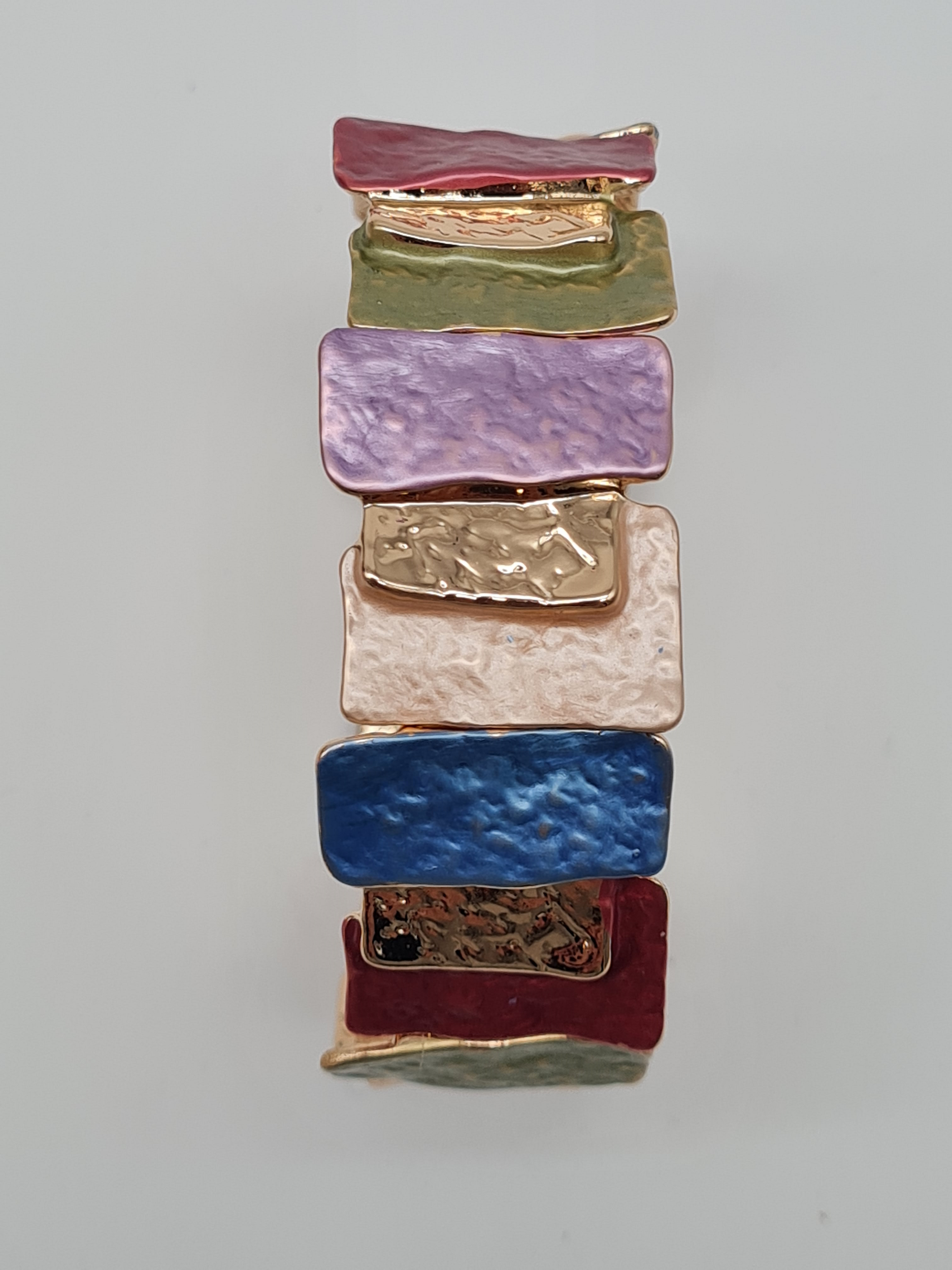 Amorino Armband, elastisch rechteckige Elemente in Braun und Goldtöne Blau bunt
