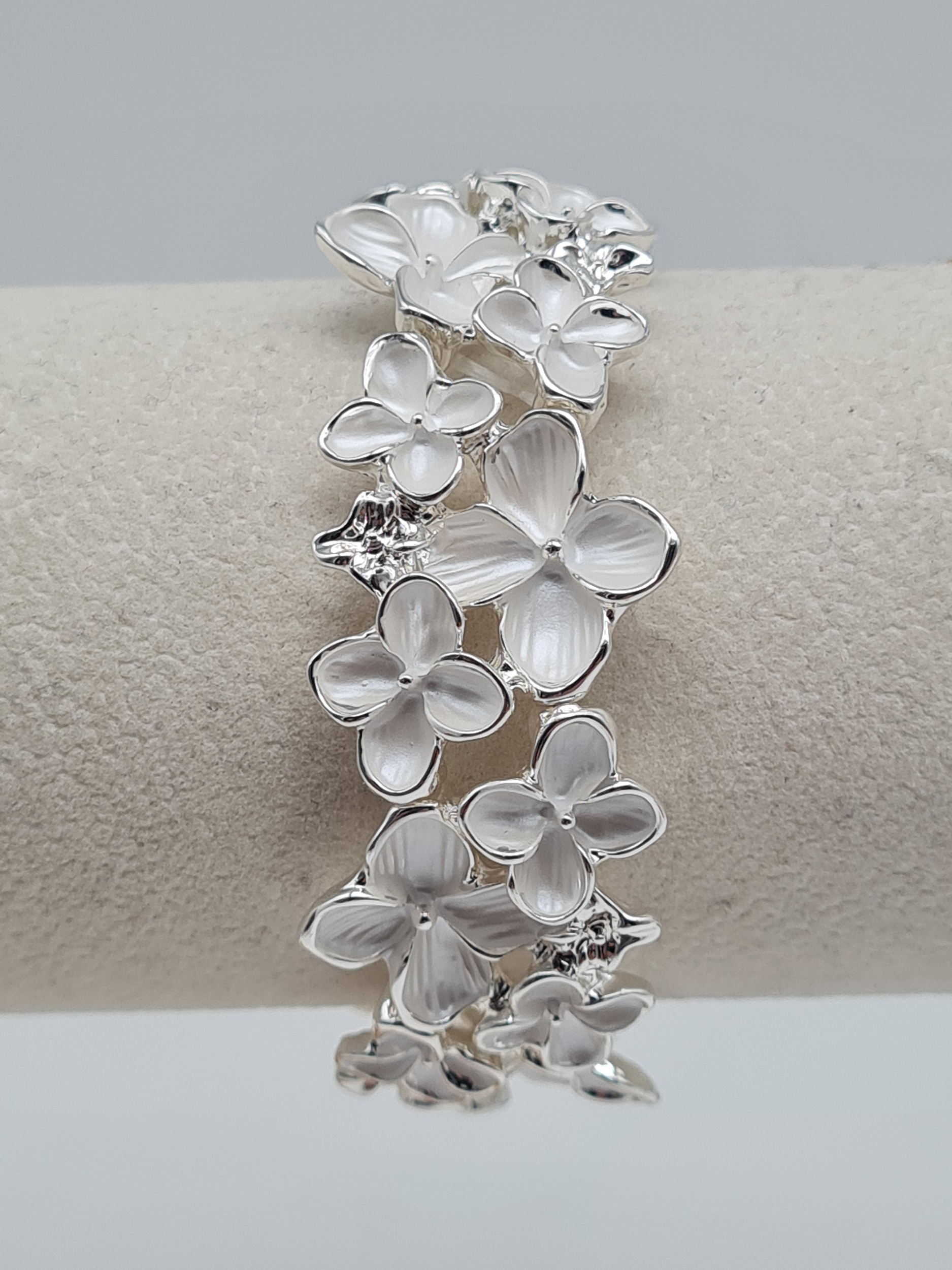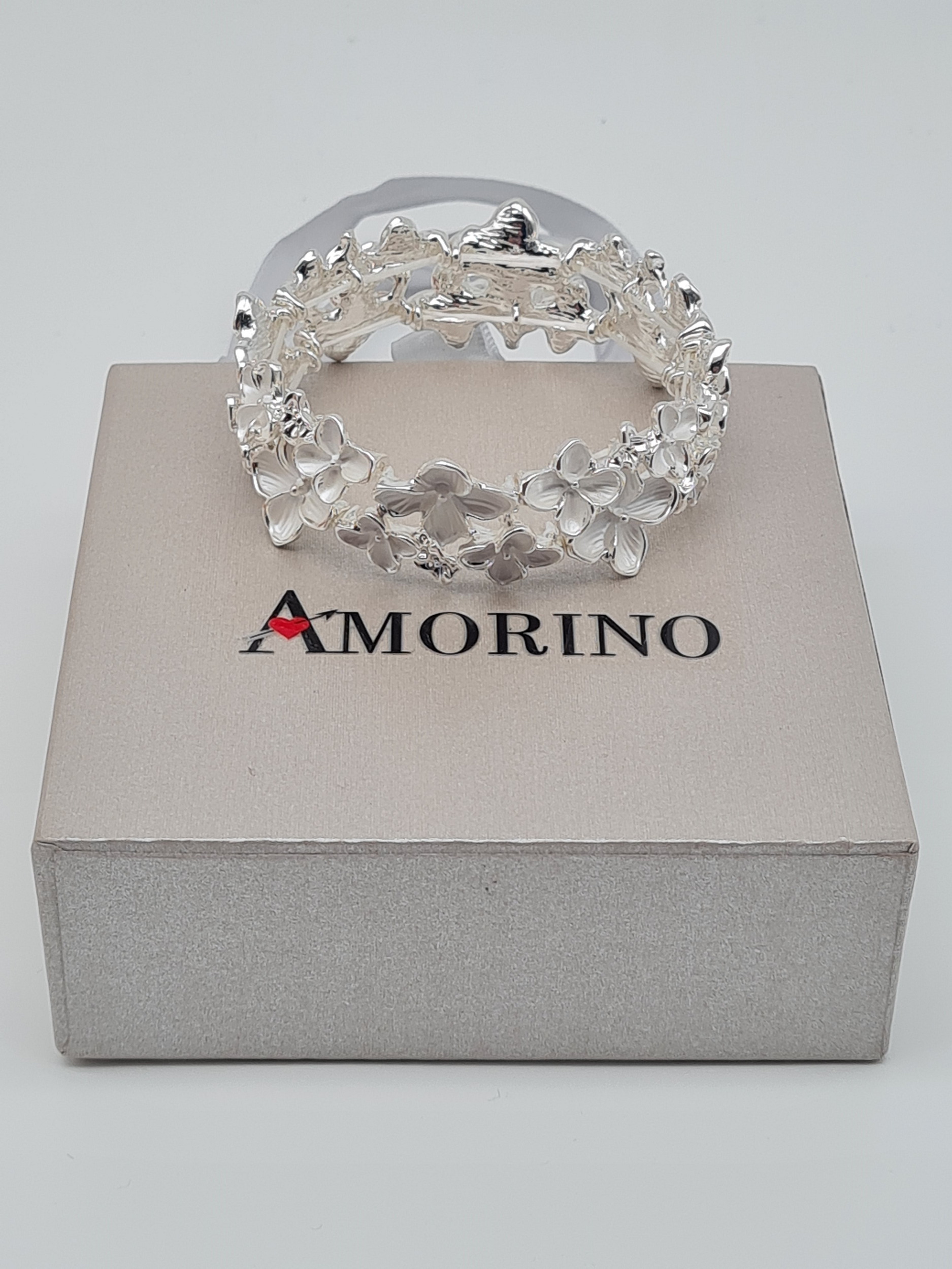 Amorino Armband, elastisches Armband in Silberweiß mit Blumenmuster