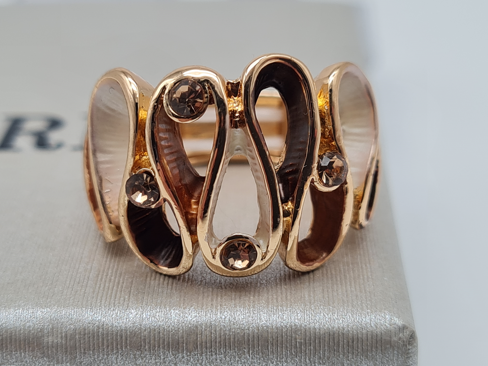 Amorino Ring, Elastischer Ring mit Emailliertem Volant, Zigzag Blau und Braun