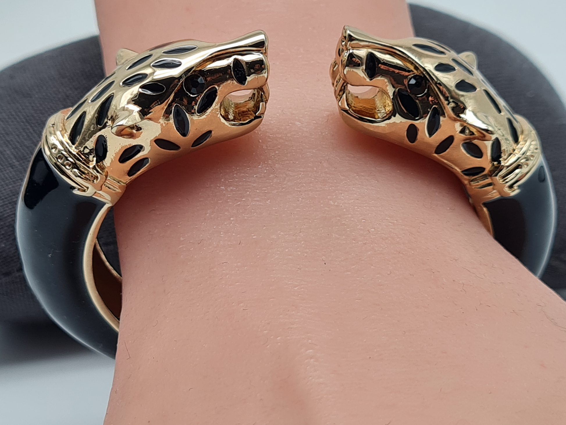 Ardoné Armreif Klapp-Armband schwarz Goldfarben Katze Leopard Tier luxus