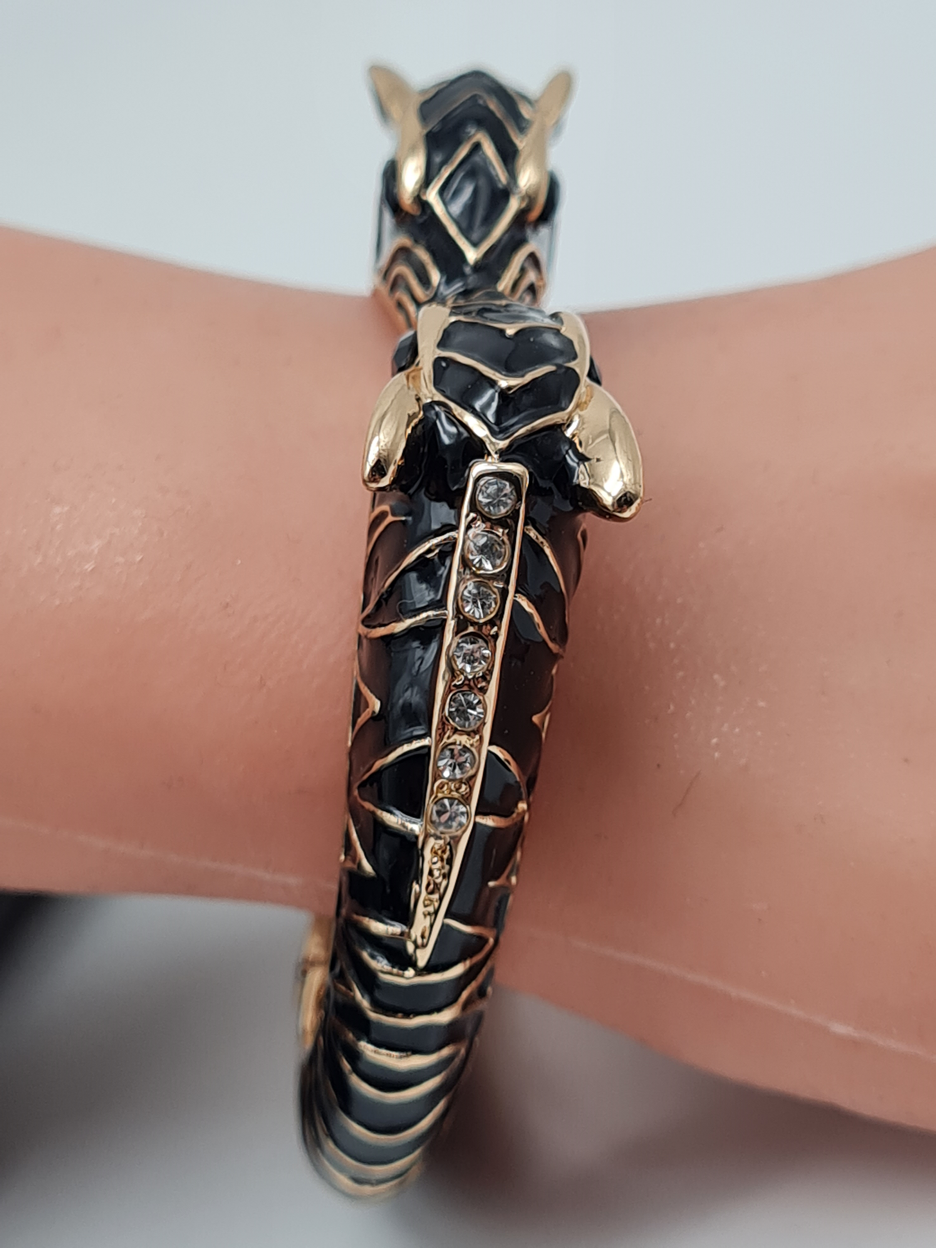 🐆 Ardoné Klapp-Armband – Schwarz & Goldfarben mit Leopardenköpfen 🐆