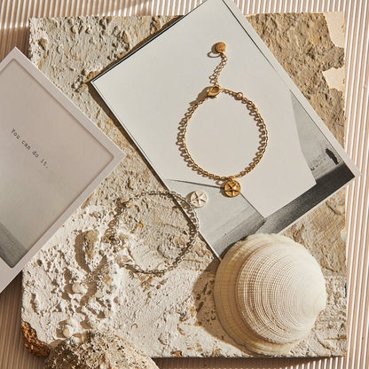 Das Biba Bettelarmband mit filigranem Muschel-Anhänger bringt die Leichtigkeit des Sommers direkt zu dir. In edlem Mattgold oder mattem Silber gefertigt, verbindet es maritimen Charme mit zeitloser Eleganz.