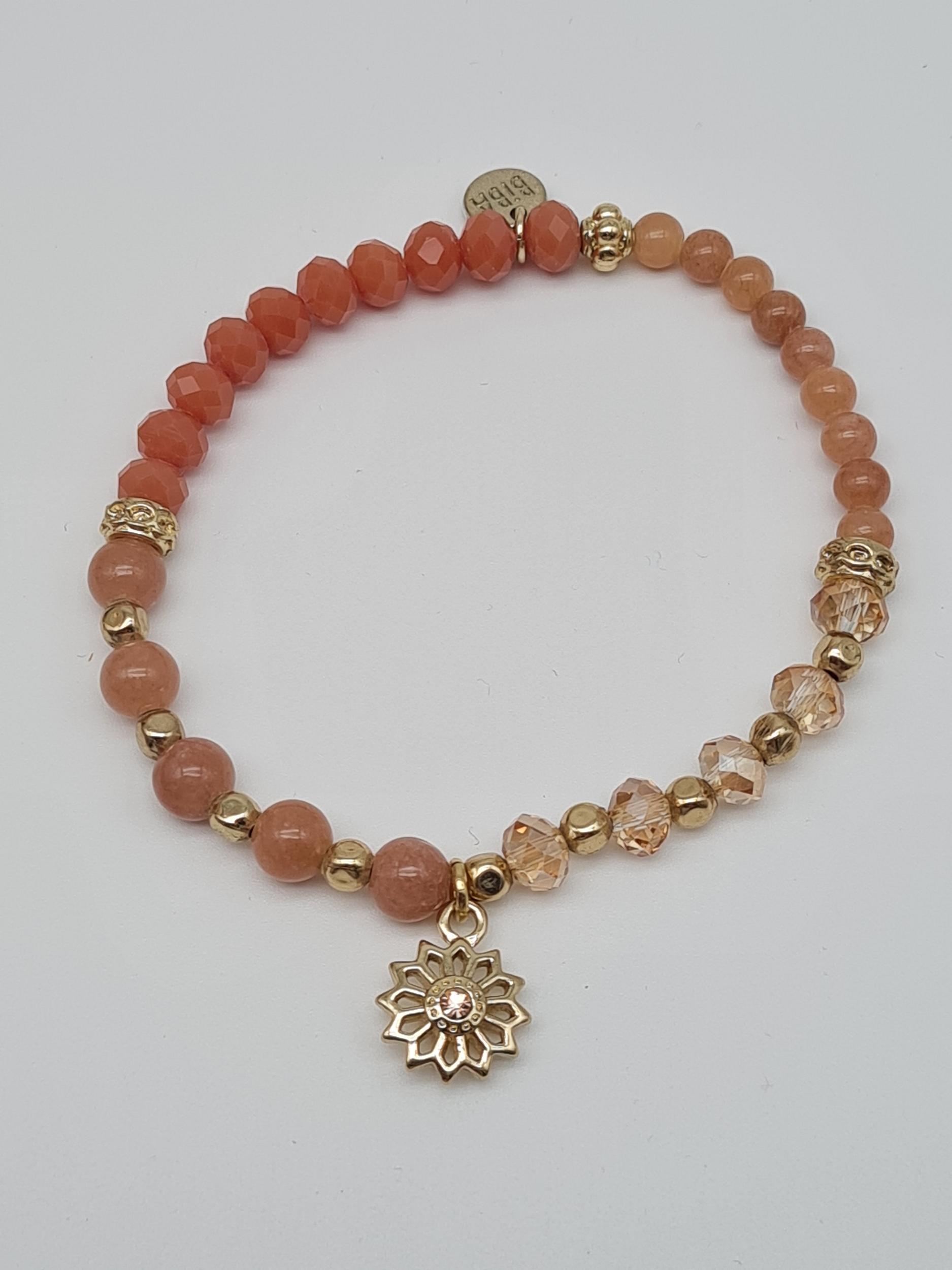 Biba Armband elastisch mit Lachs-Rosa Crystal Perlen und Blumenanhänger