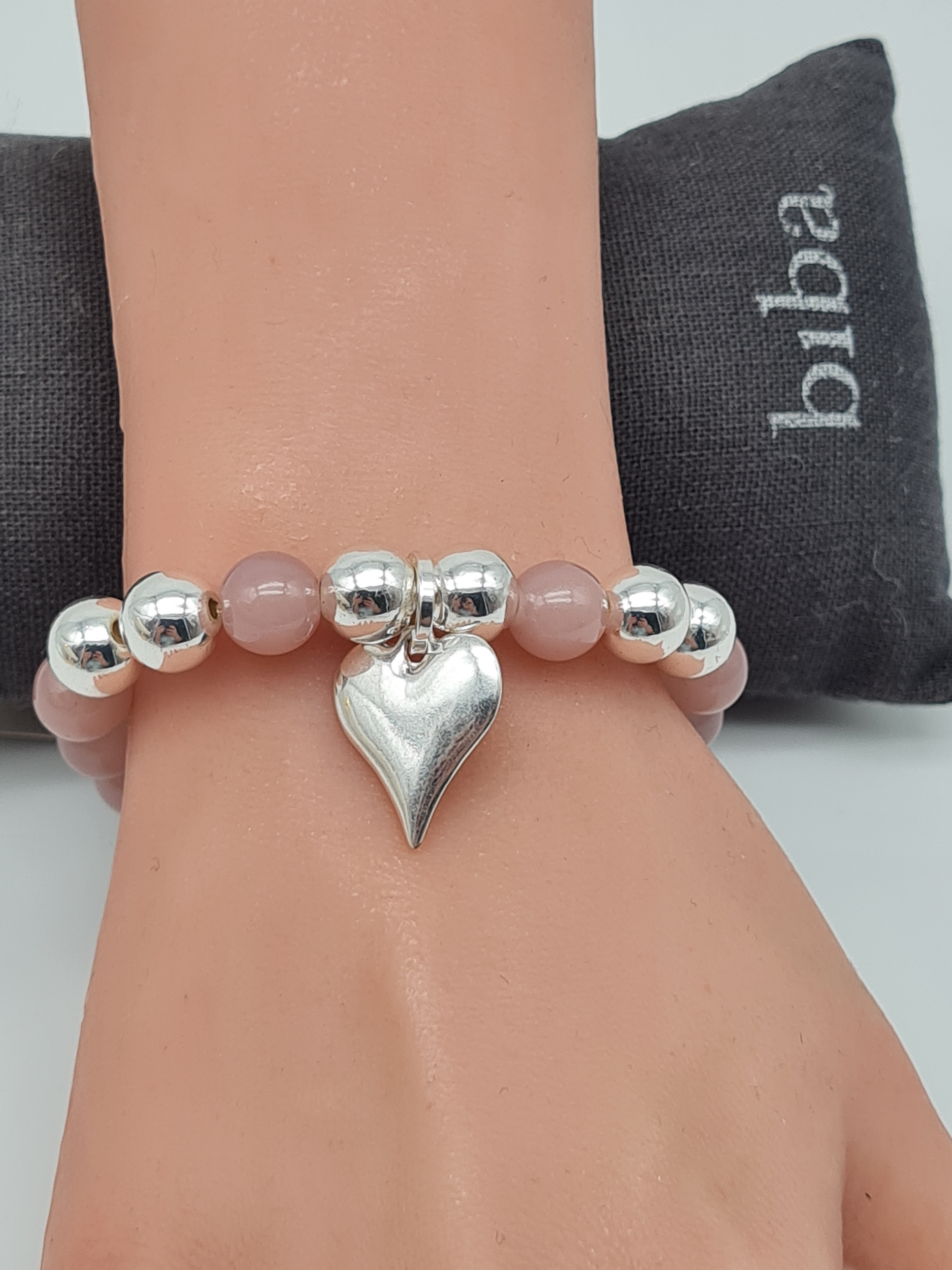 Biba Armband elastisch Silberfarben mit Rosa und Herz Anhänger