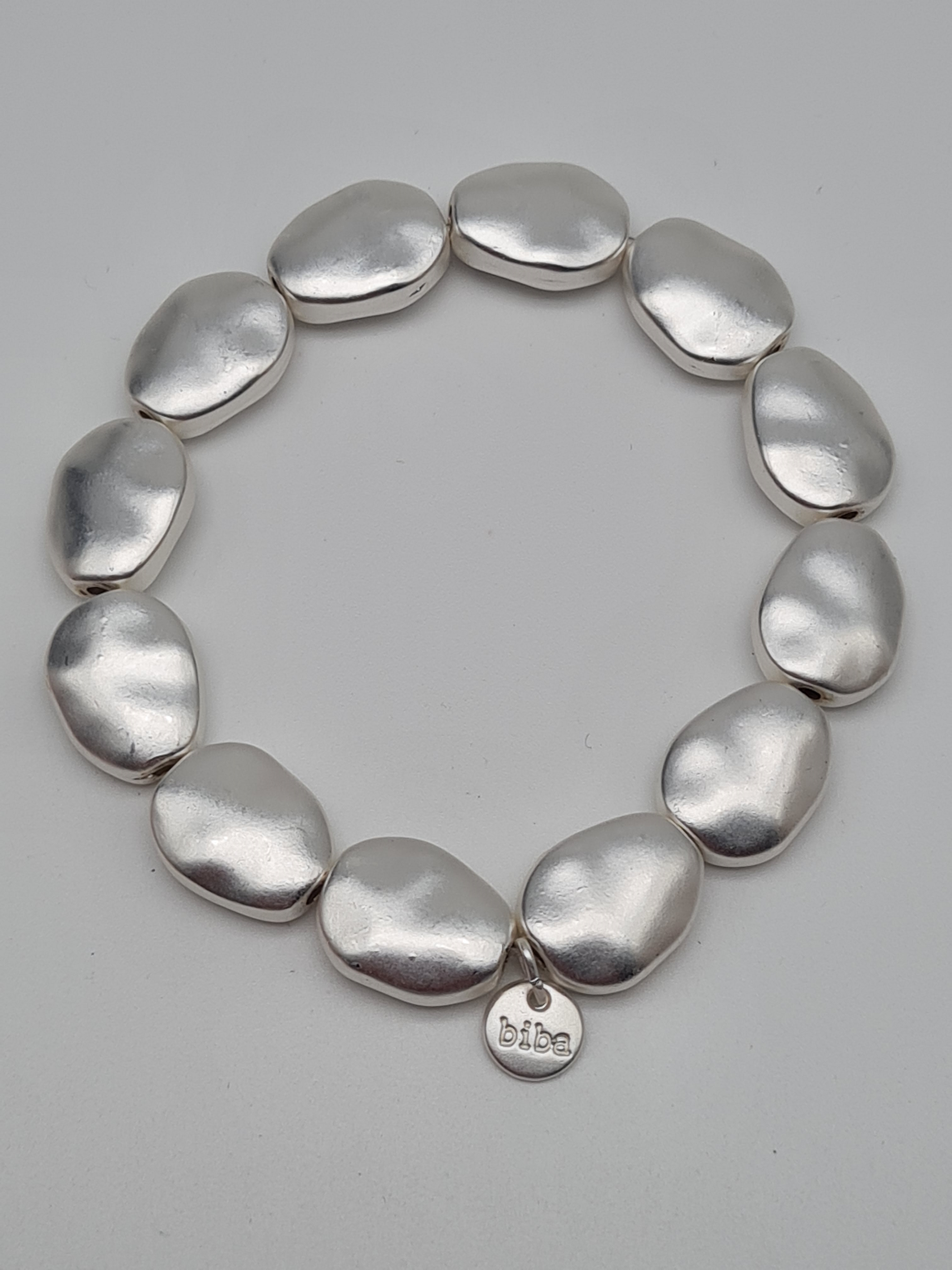 Biba Armband elastisch Matt Silberfarben organische Elementen