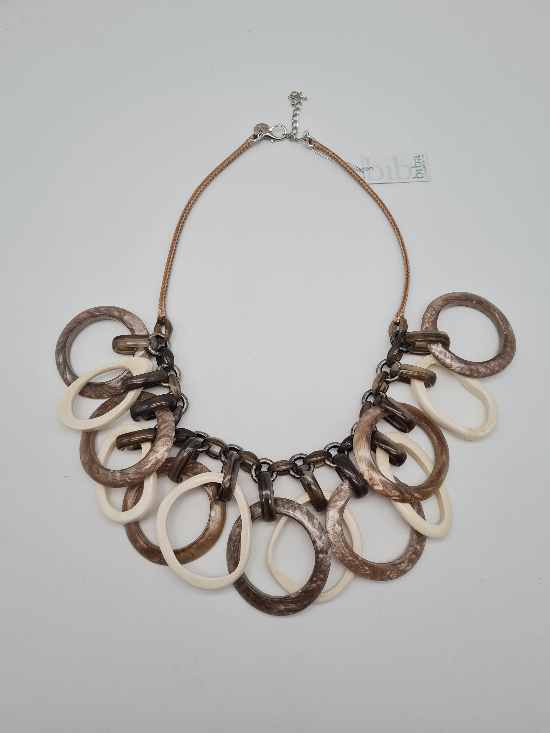 Retro, modern und absolut im Trend: Diese Biba Halskette vereint warme Braun- und Beigetöne mit irisierenden Elementen in Taupe. Im Stil der 70er Jahre gestaltet, ist sie ein echter Hingucker und verleiht jedem Outfit einen Hauch von Vintage-Chic.