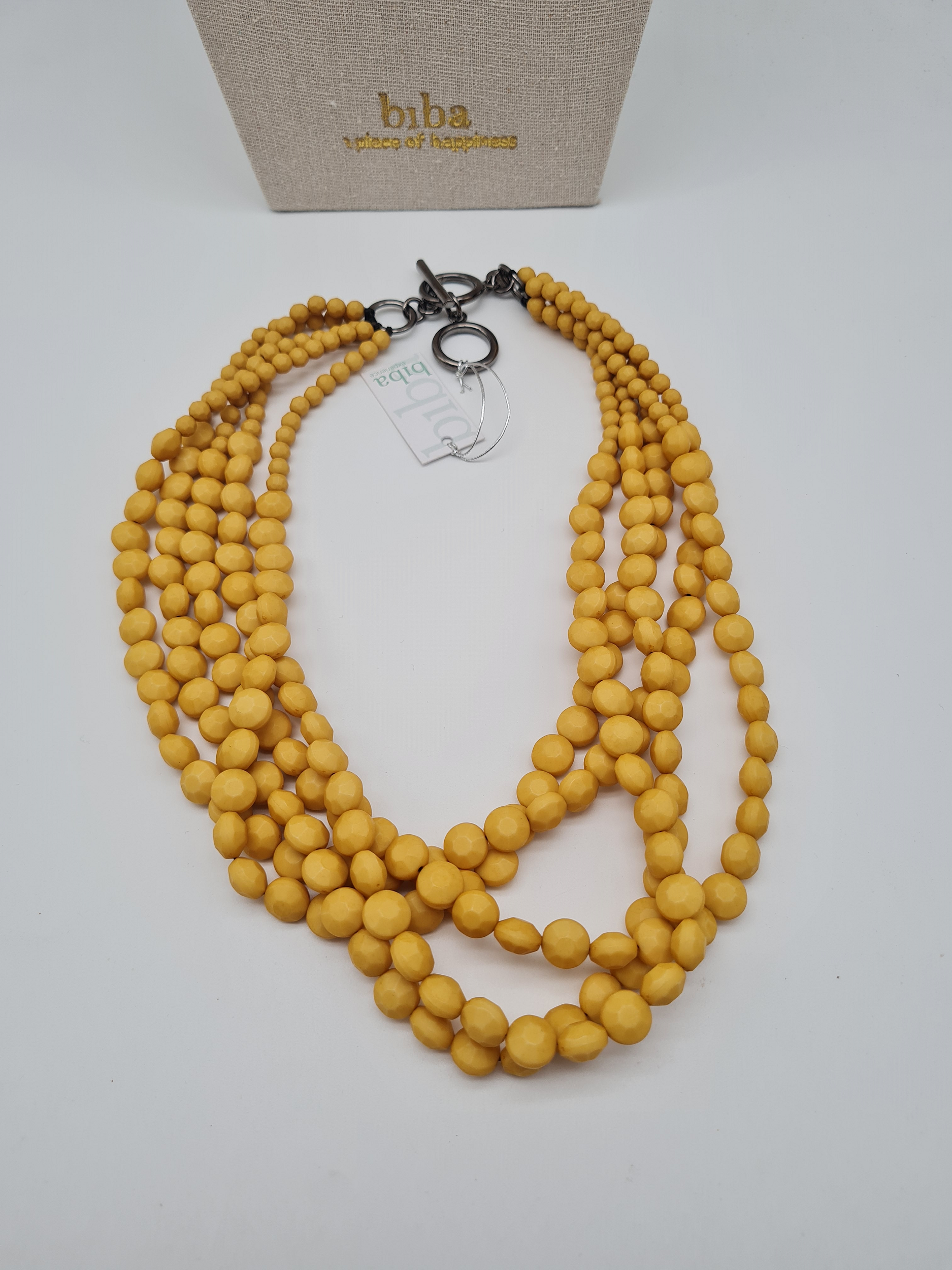 Biba Kurz Mehrfach Halskette in Senf Gelb Farbe