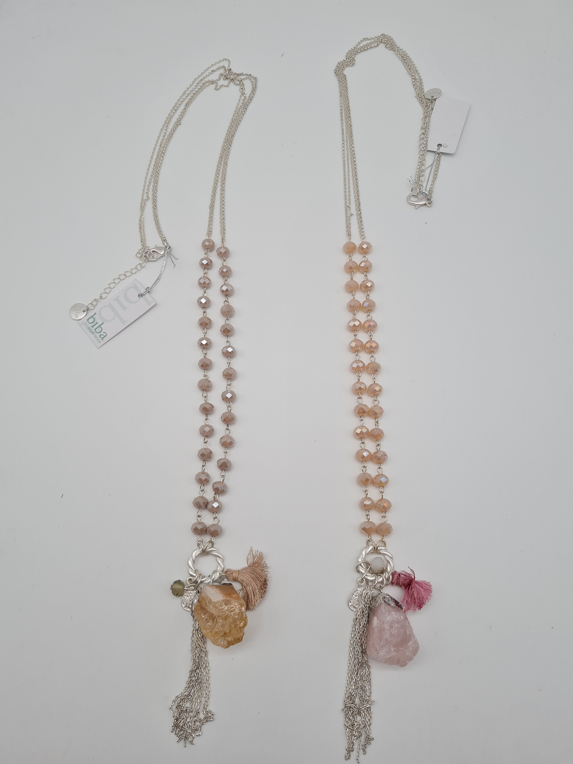 Biba Halskette mit Anhänger Naturstein in Rosa und Naturfarbe