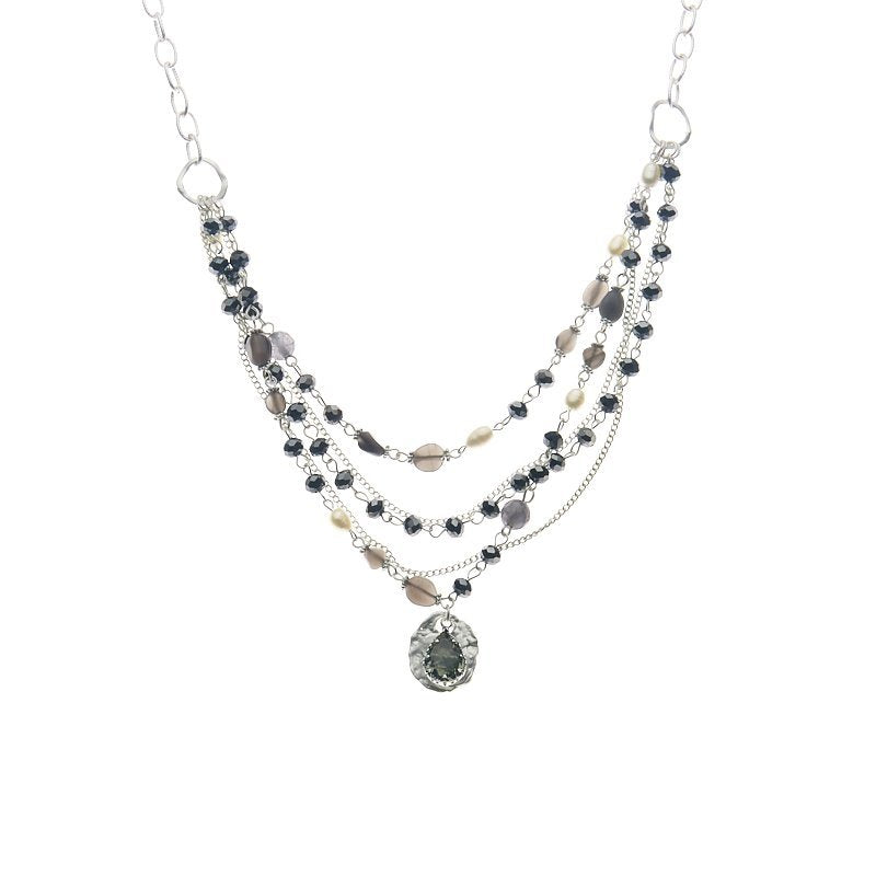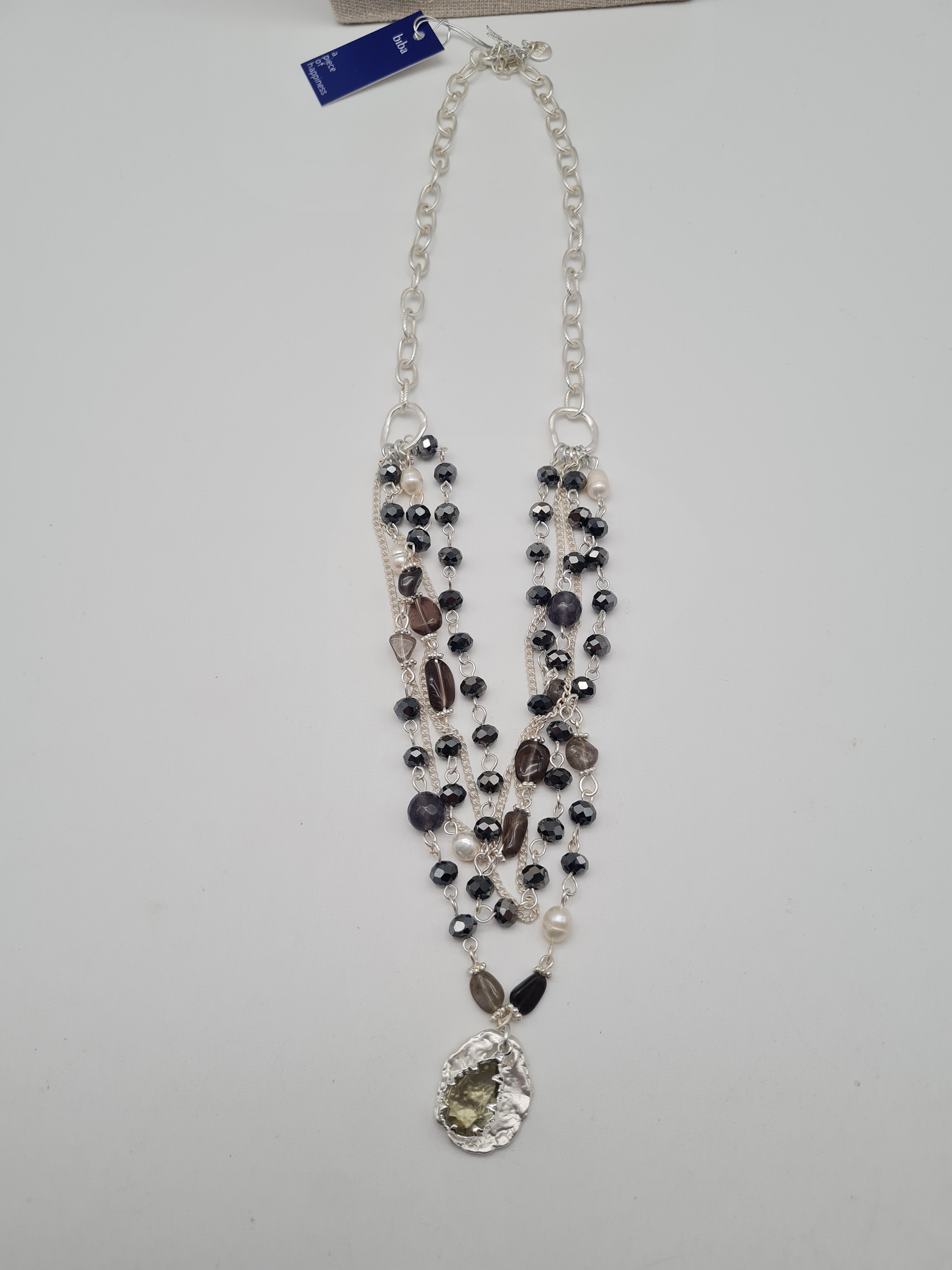 Biba Langhalskette mit mehrfachkette als Anhänger in Matt Silberfarben mit Schwarz