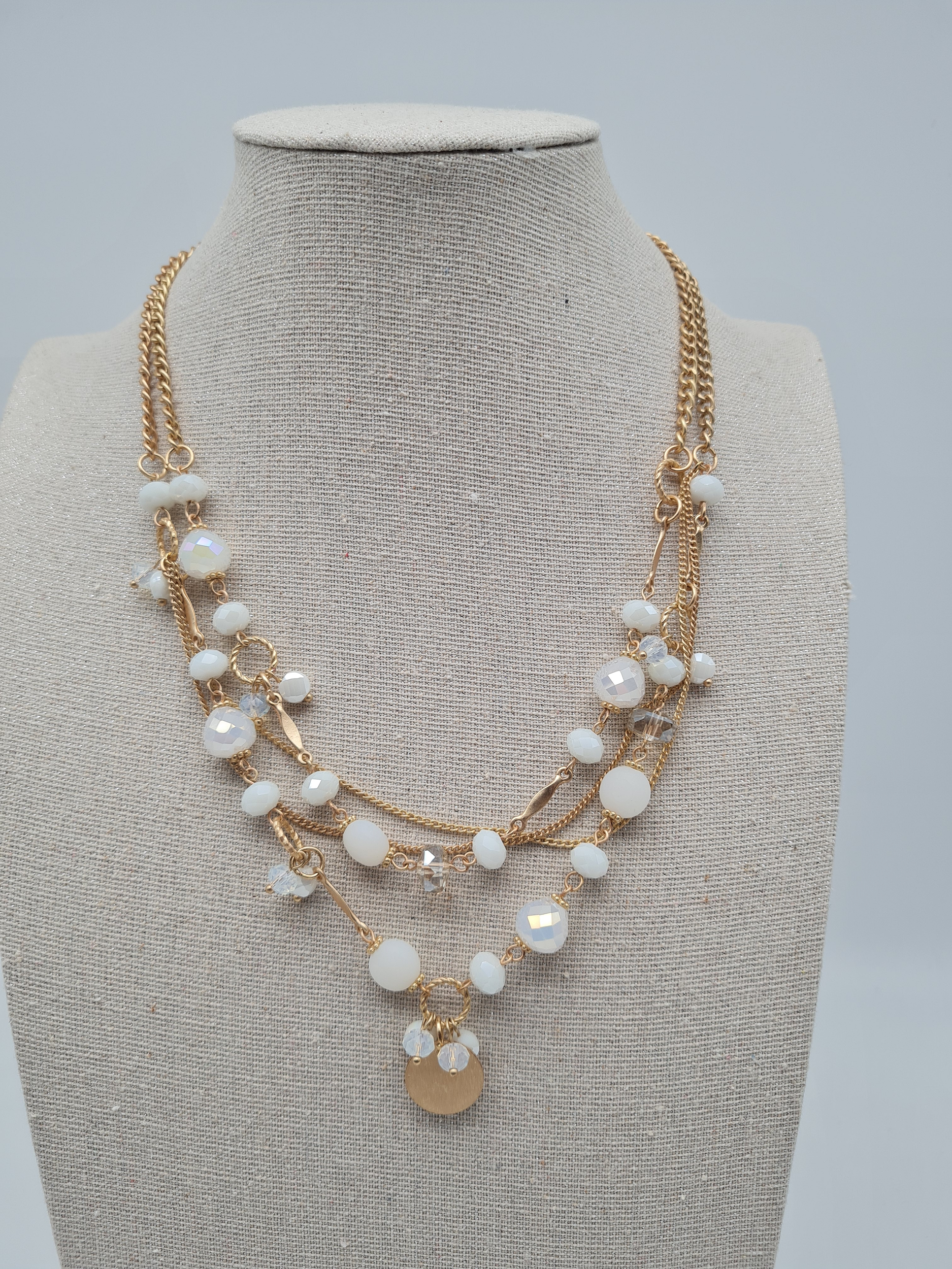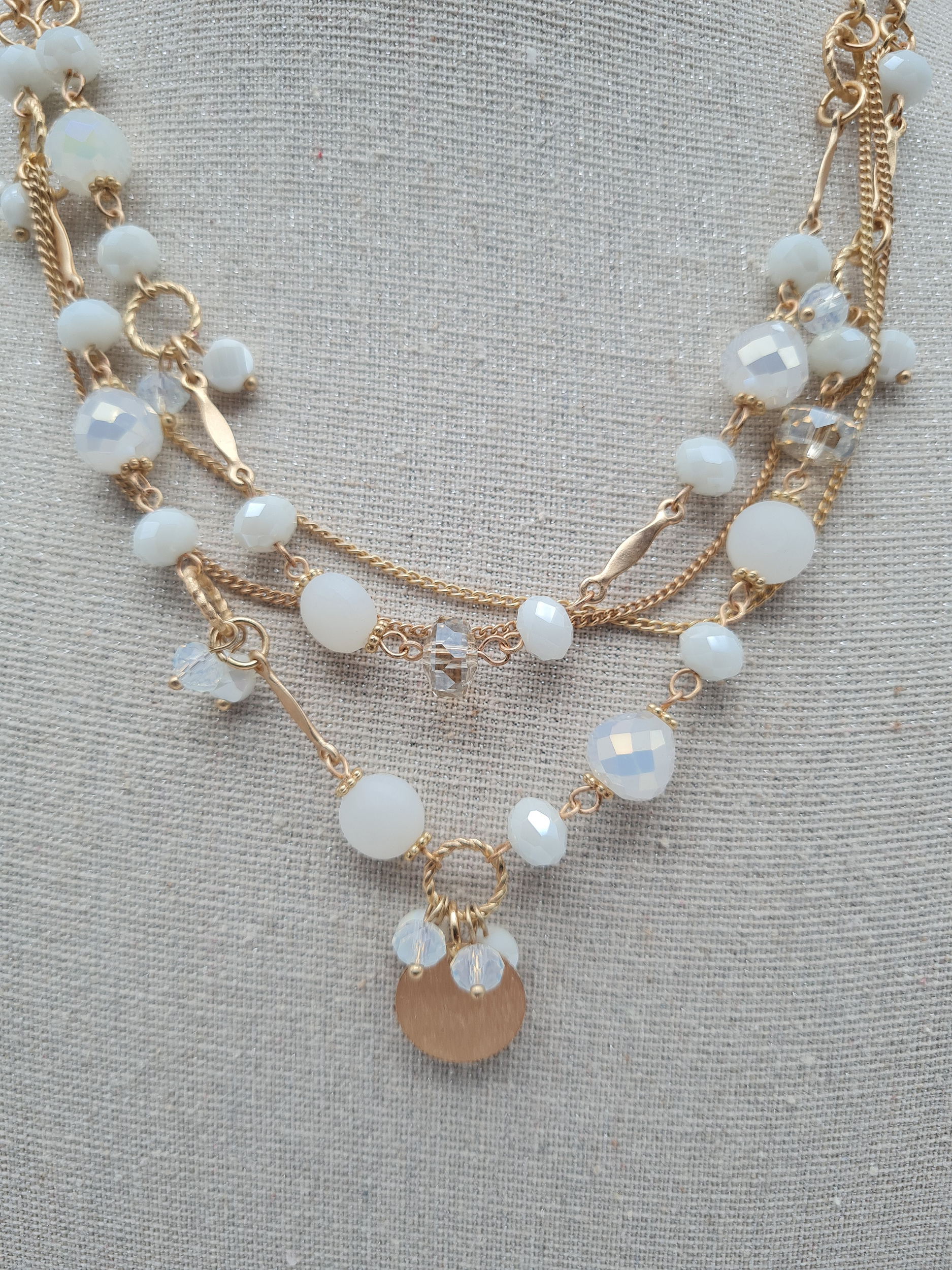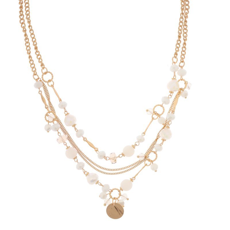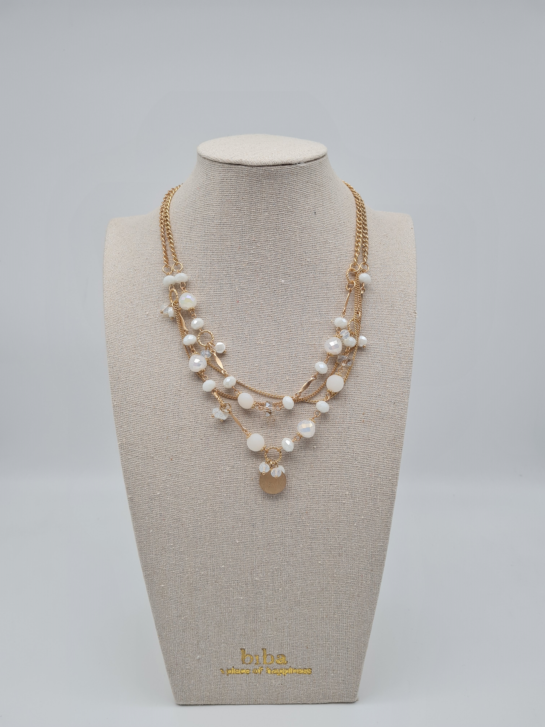 Biba Langhalskette in goldfarben mit Weiße Crystal perlen