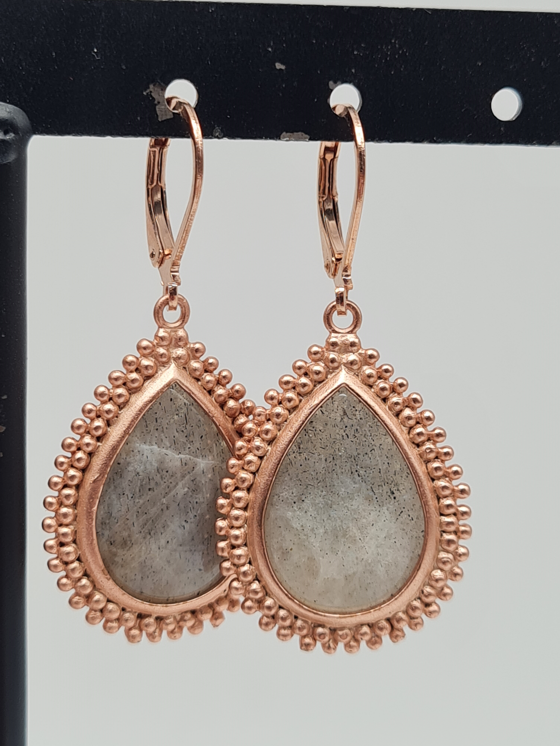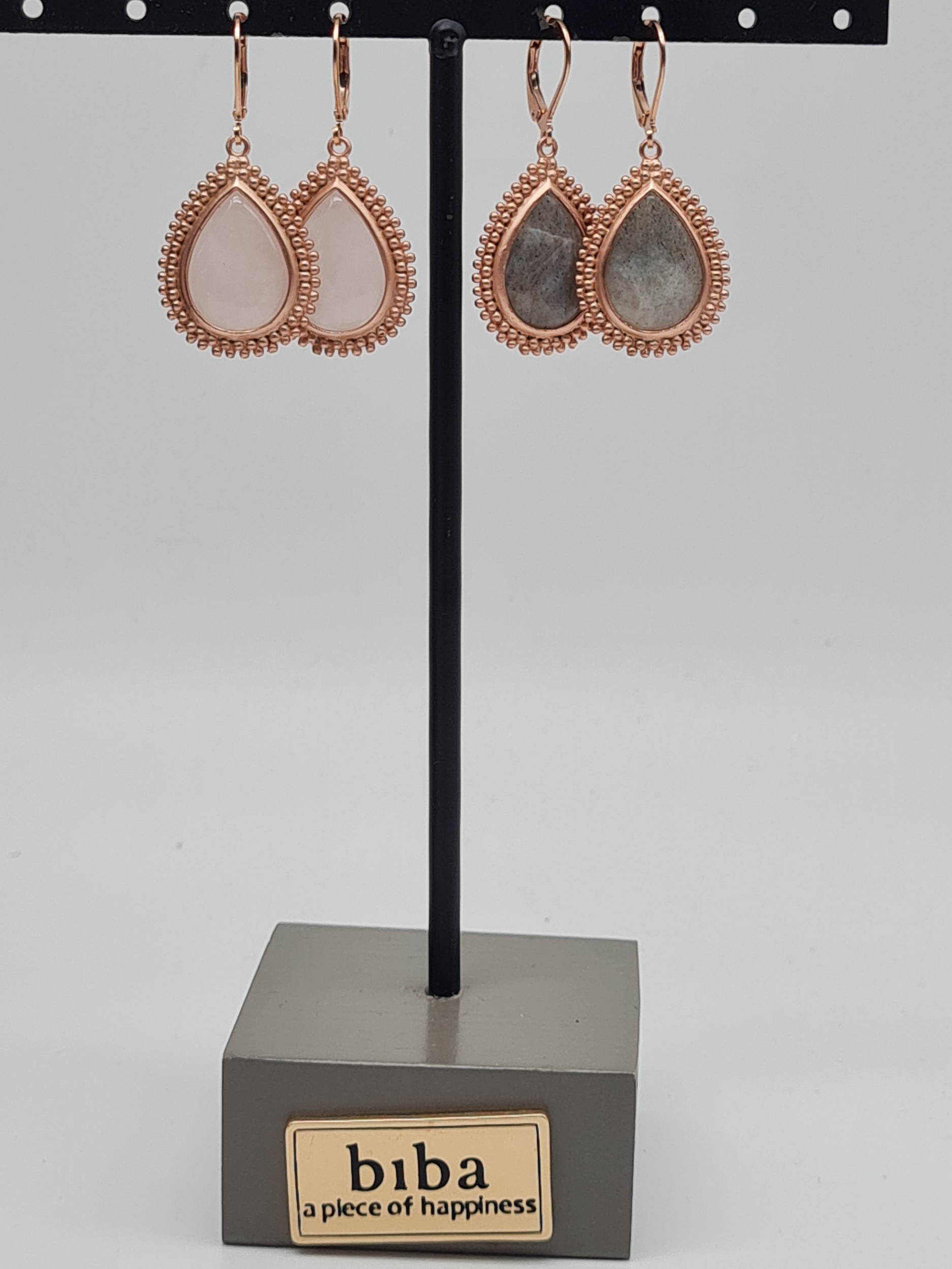 Biba Ohrhänger "Lolalita" Tropfenform mit Hellgrüner Oder Creme Naturstein