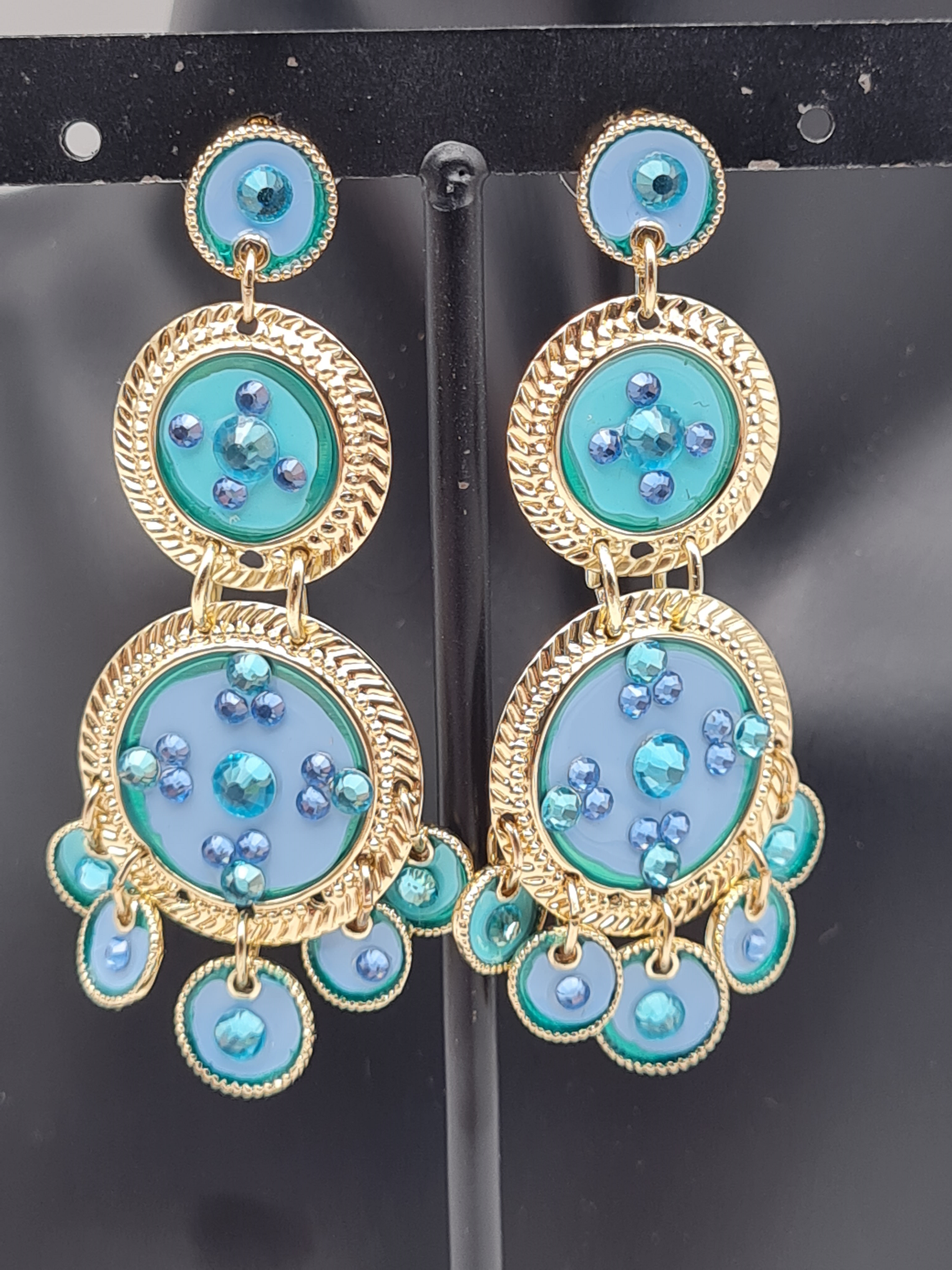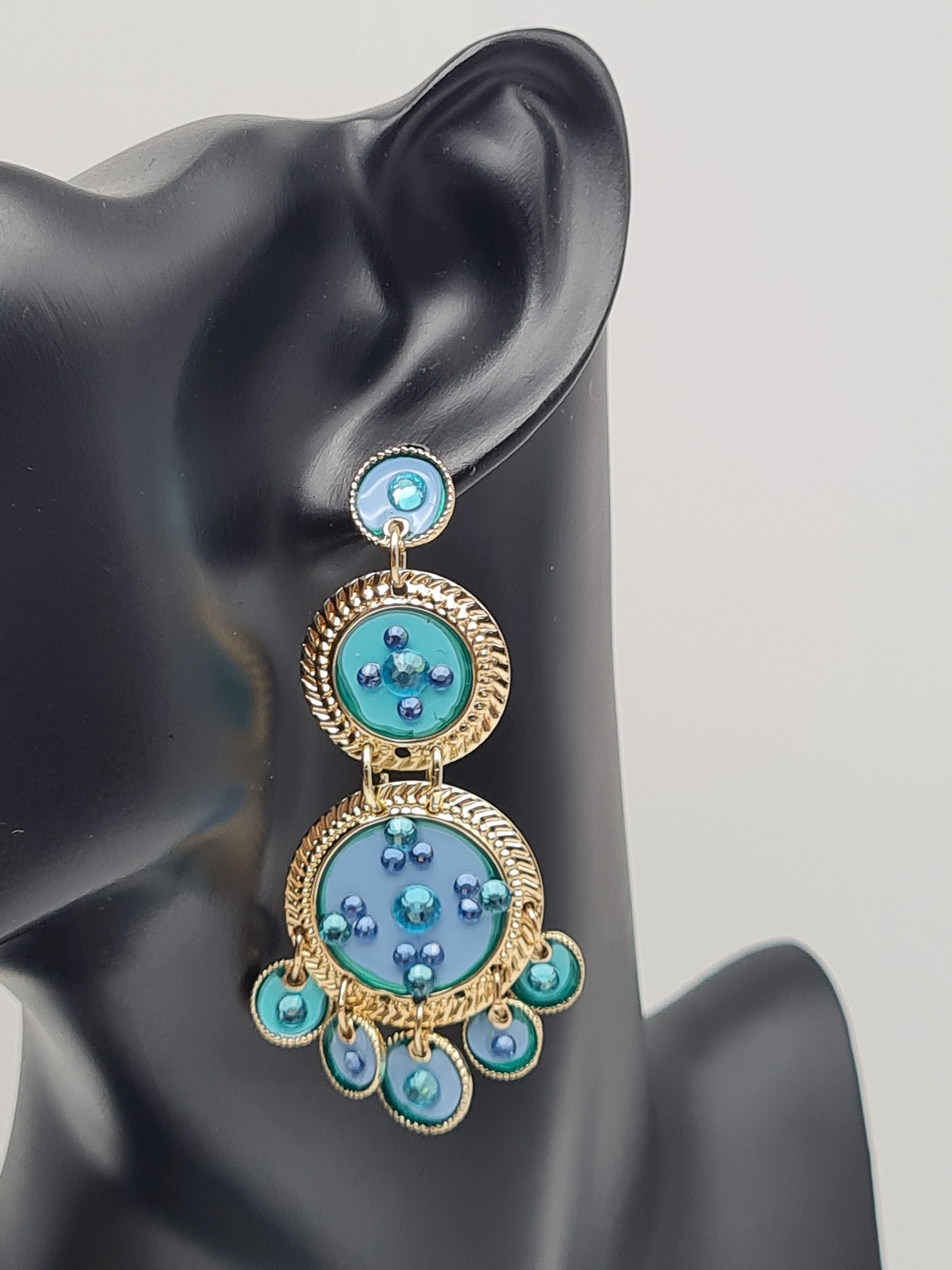 Biba Ohrringe, Ohrhänger Wassertropfen eingefasst in Golden Rahmen, Einzigartig