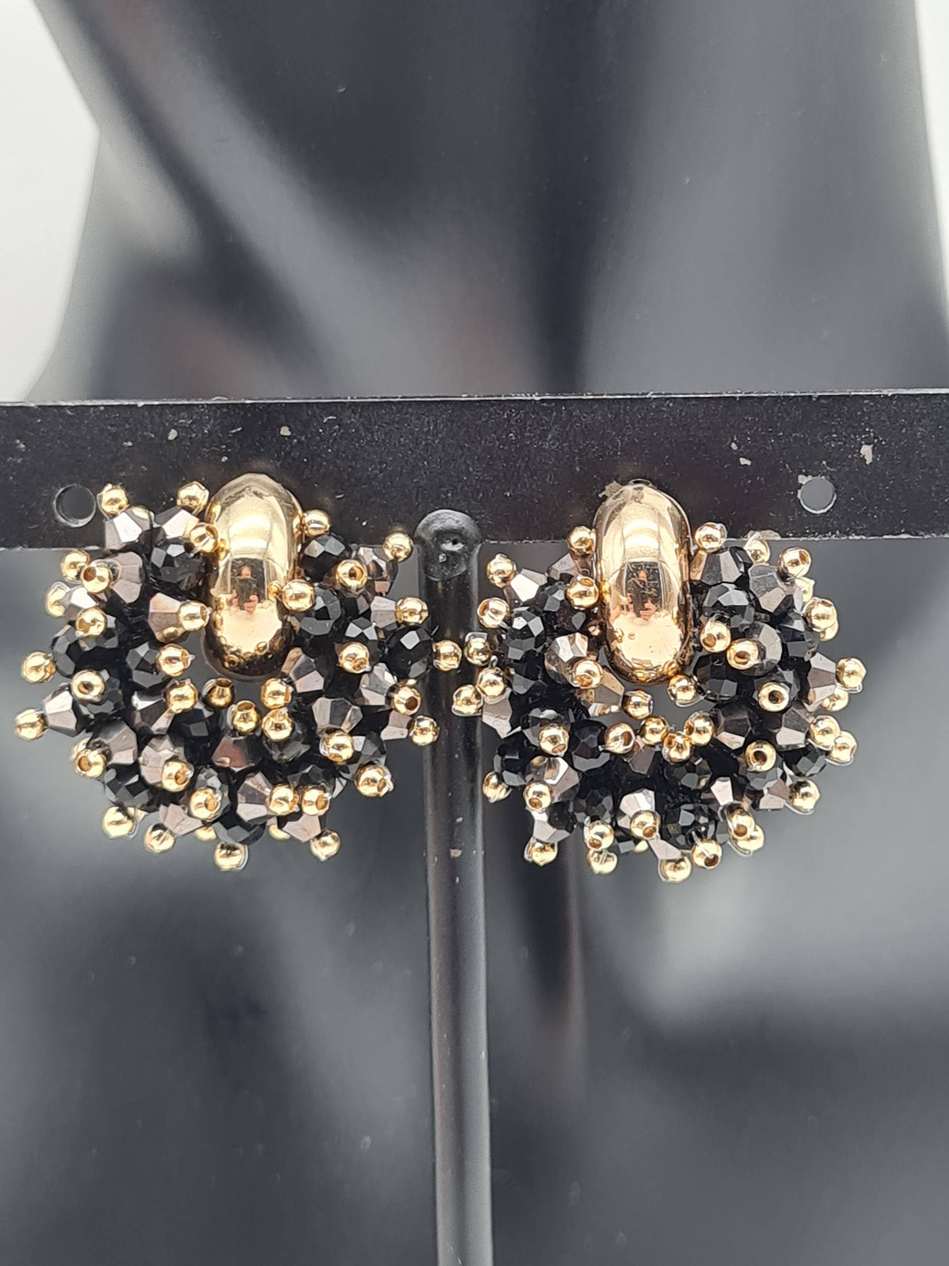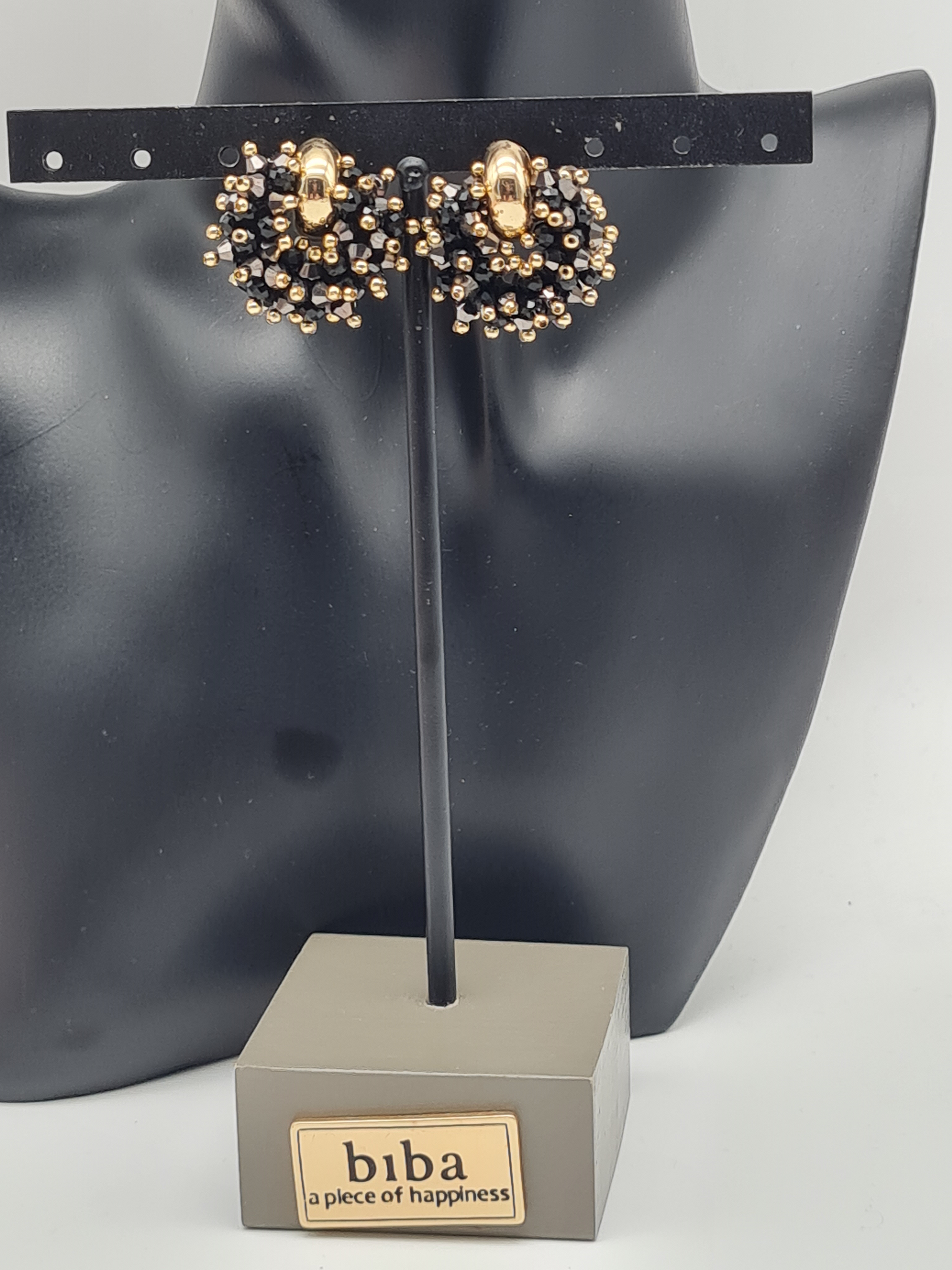 Biba Ohrringe, Ohrstecker Goldfarben mit Schwarz-goldene Perlchen