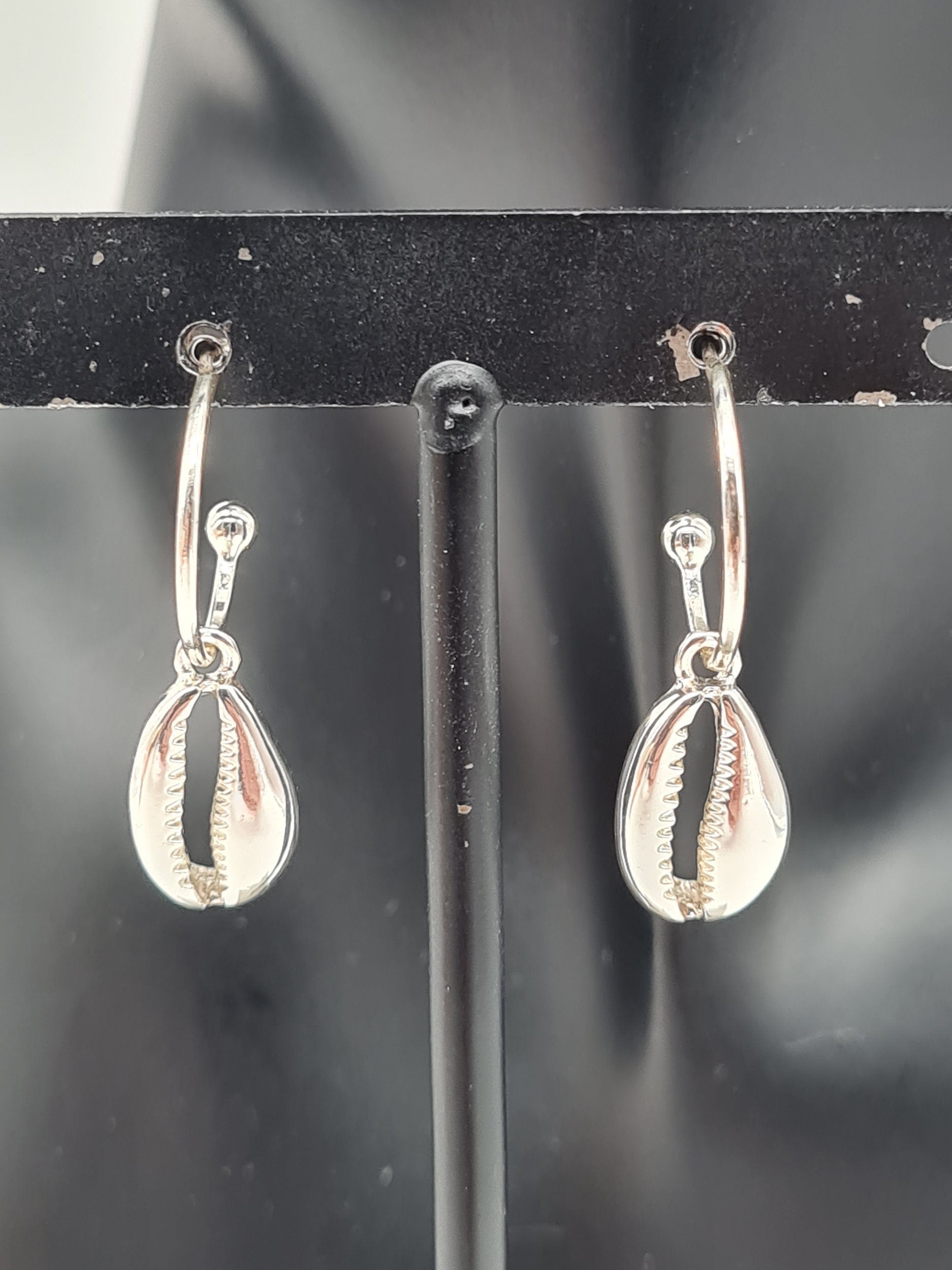 Biba Ohrringe, Ohrhänger Silberfarben mit Muschelanhänger