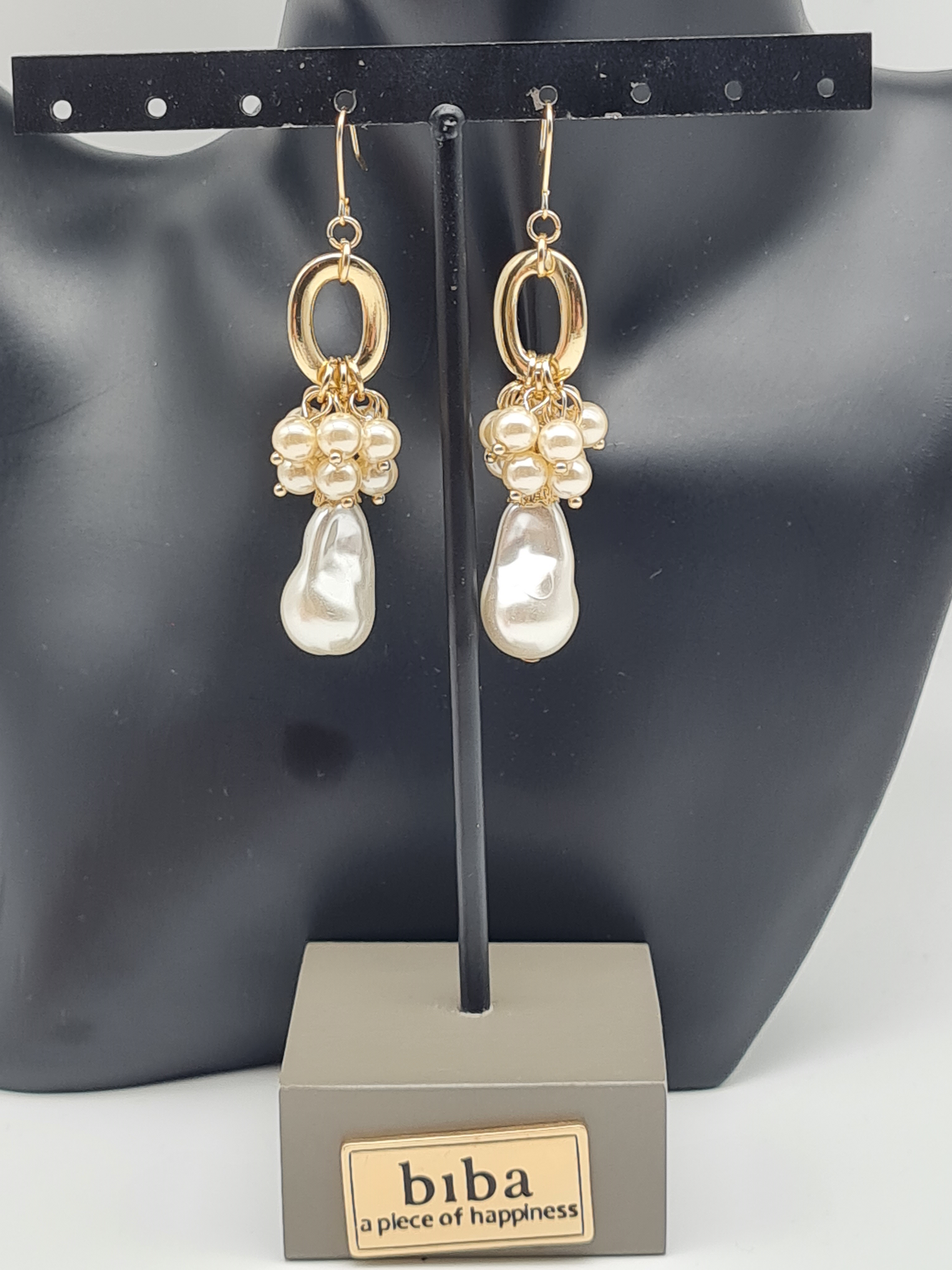 Biba Ohrringe, Ohrhänger Süßwasserperlen an goldene Rinnen