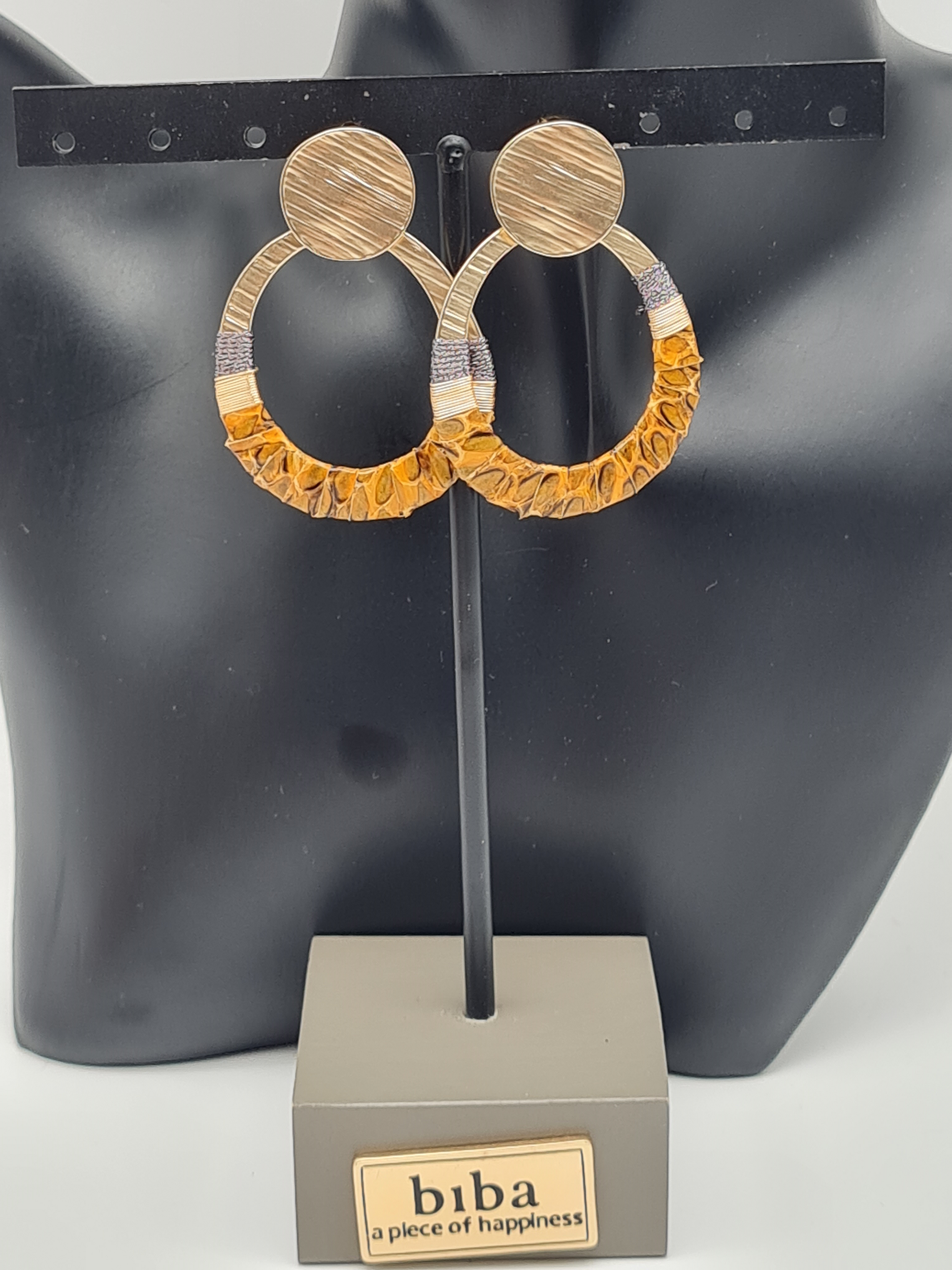 Die goldfarbenen Biba Ohrhänger sind mit feinem Leder umwickelt und mit einem markanten Tierprint verziert. Modern, mutig und ausdrucksstark bringen sie einen Hauch von Exotik und Abenteuerlust in dein Outfit – perfekt für trendbewusste Looks.