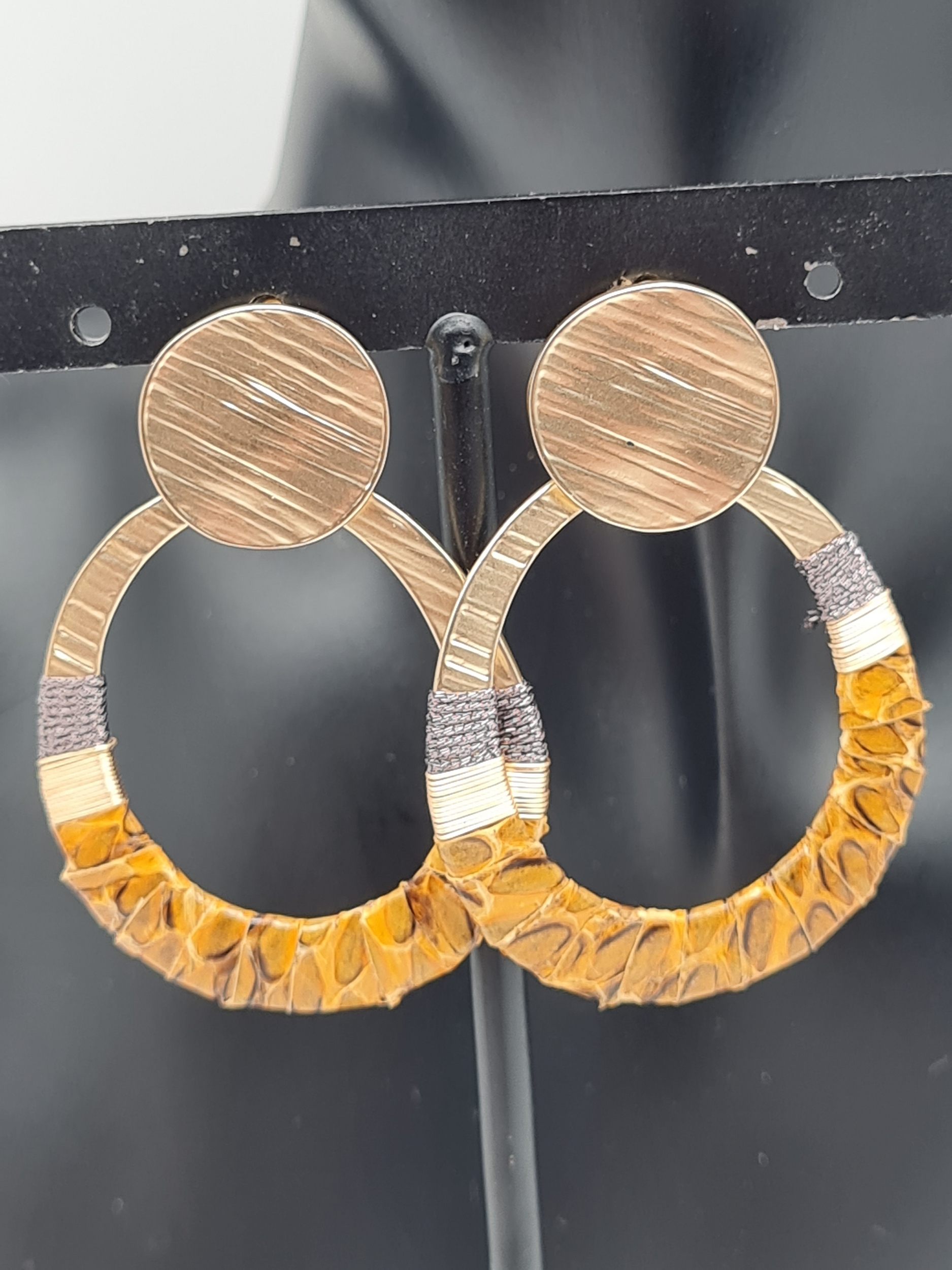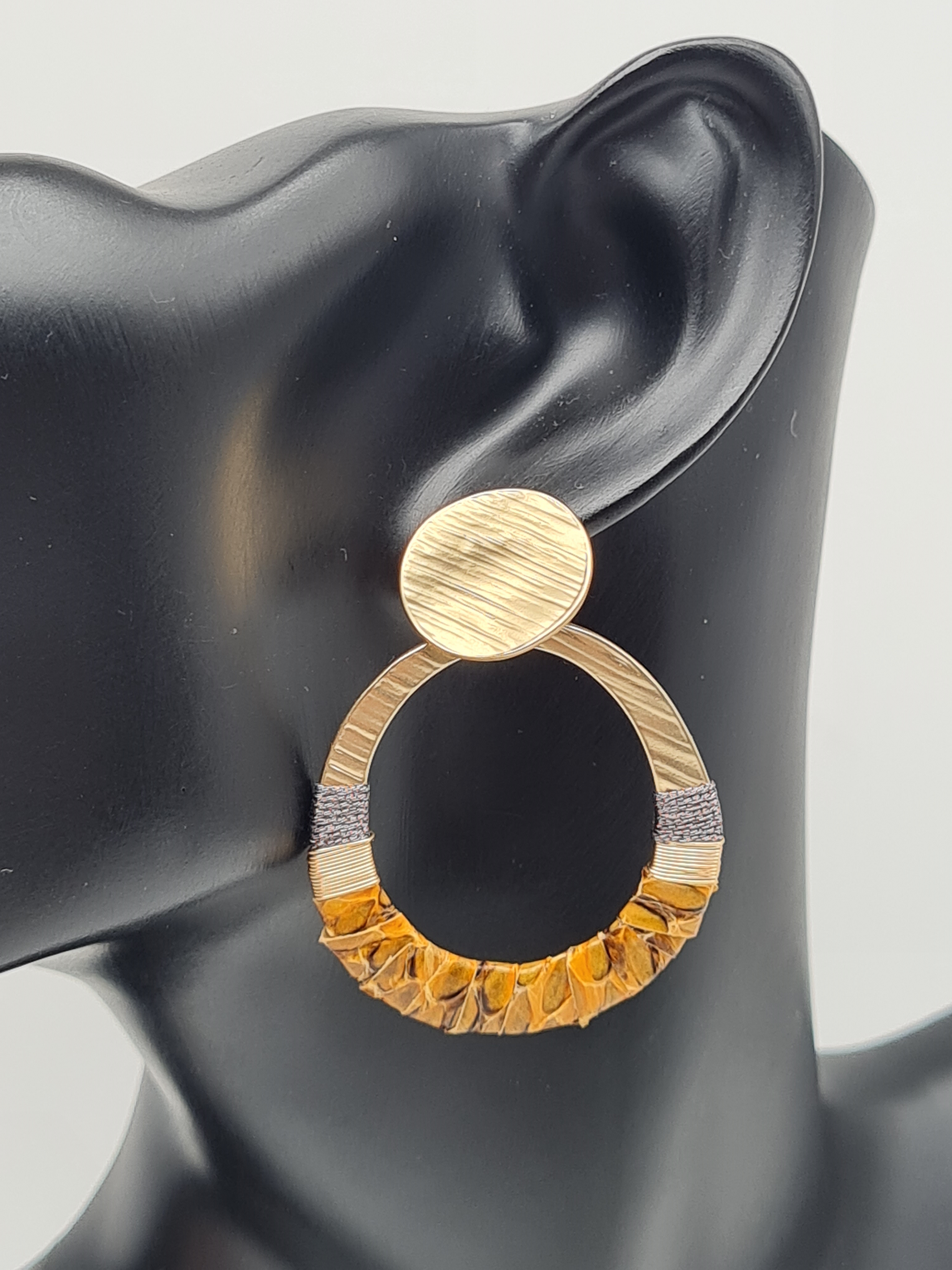 Biba Ohrringe, Ohrhänger Goldfarben in Ledergewickelt mit Tierprint