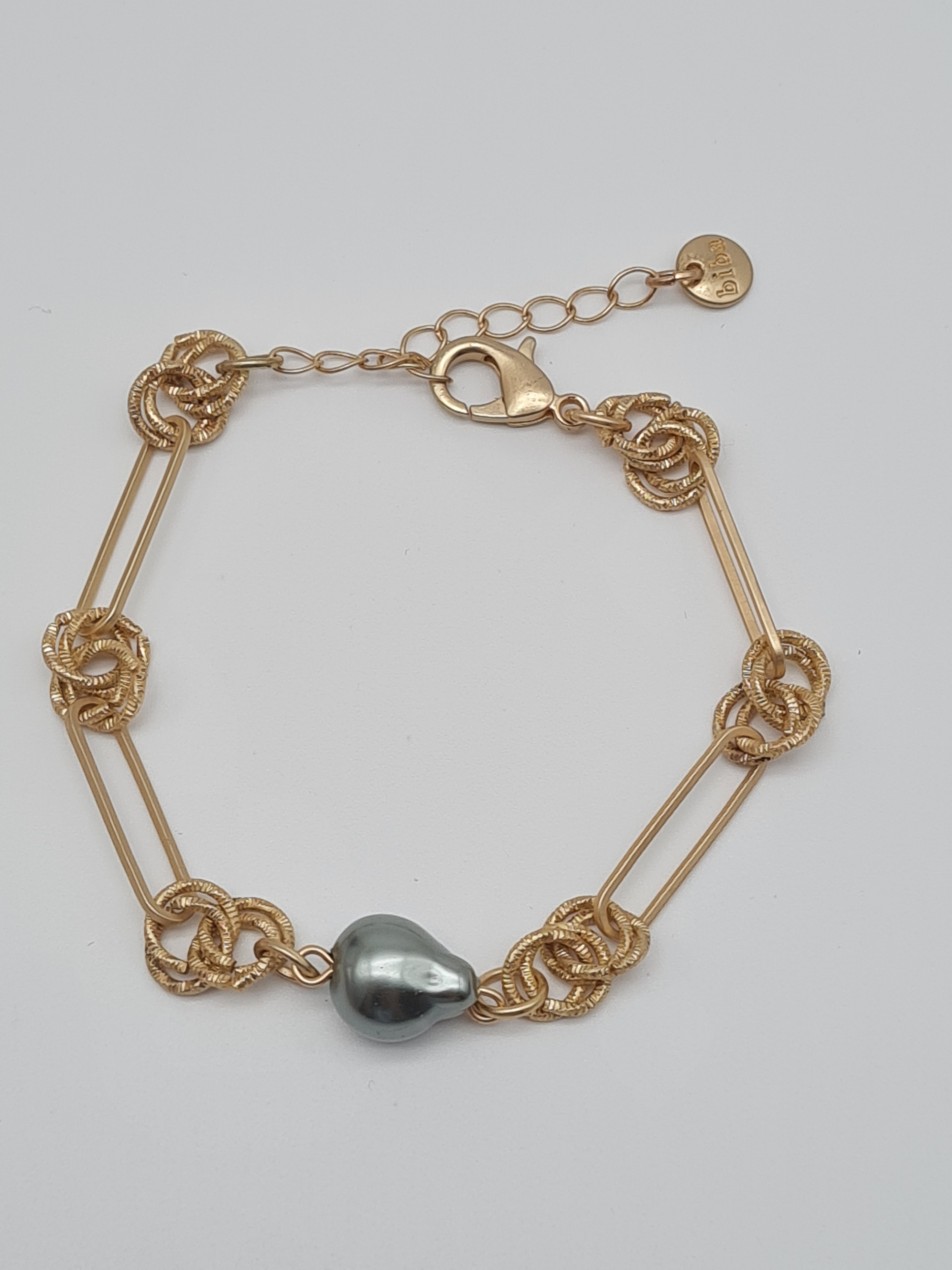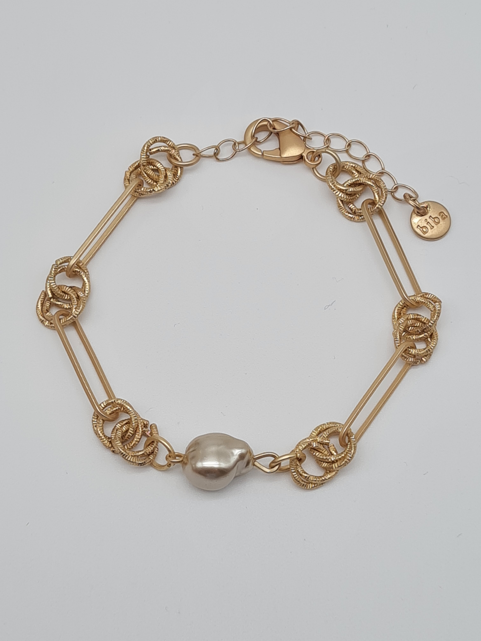 Biba Gliederarmband in Matt Goldfarben mit grau oder naturfarbene Perle