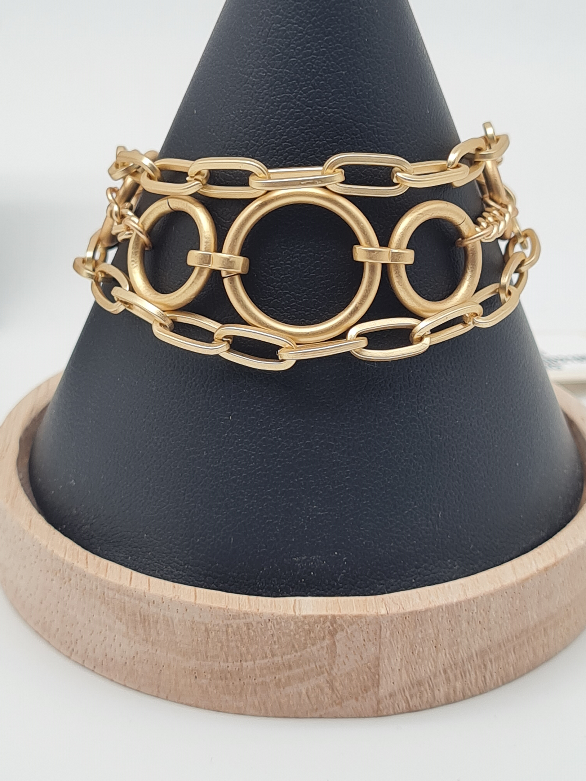 Biba 3-fach Gliederkette mit mittig ein kette mit größere kreise, Matt goldfarben