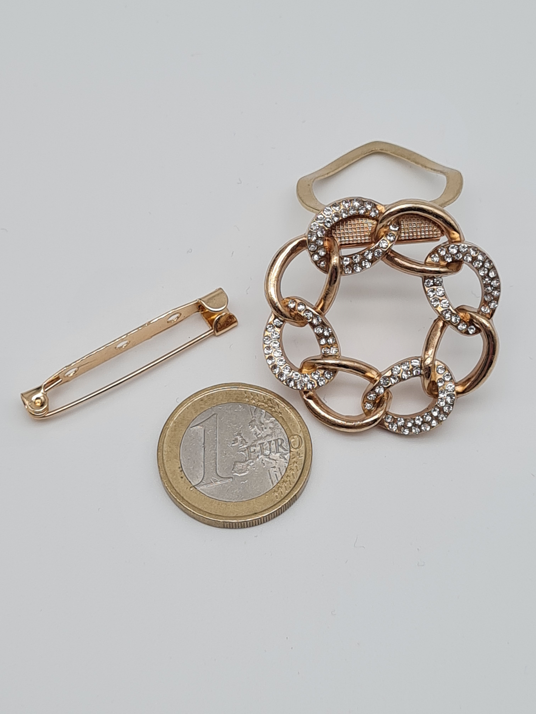 Brosche kranz schalhalter schal tuch modeschmuck goldfarben strass glieder