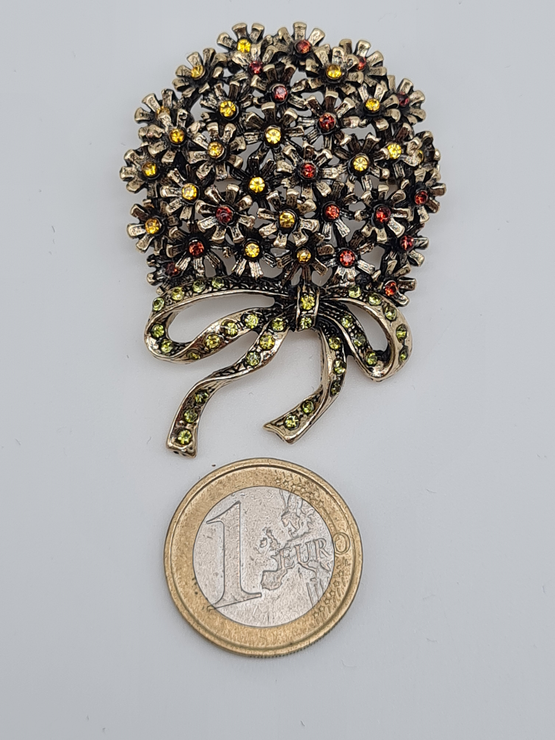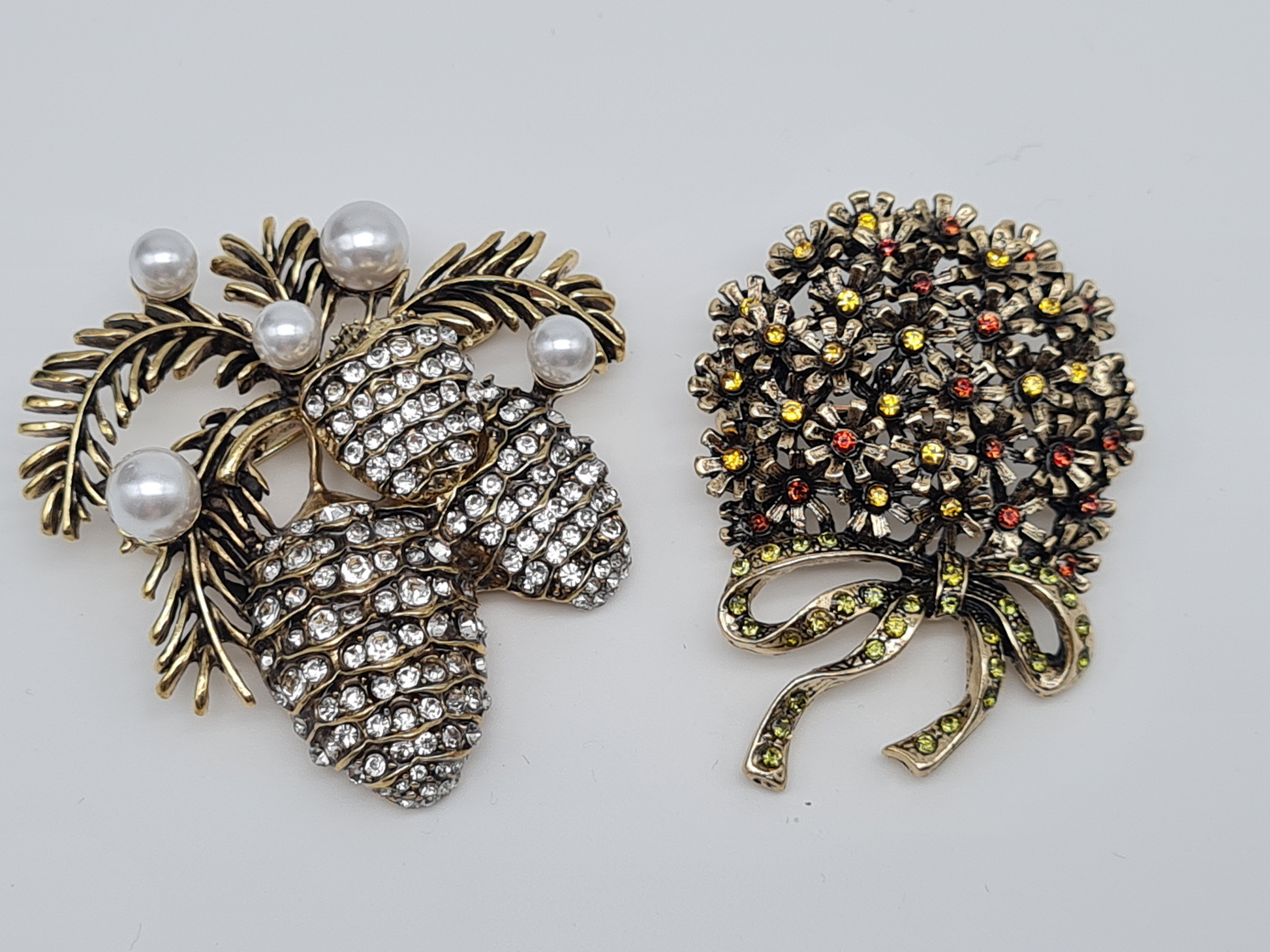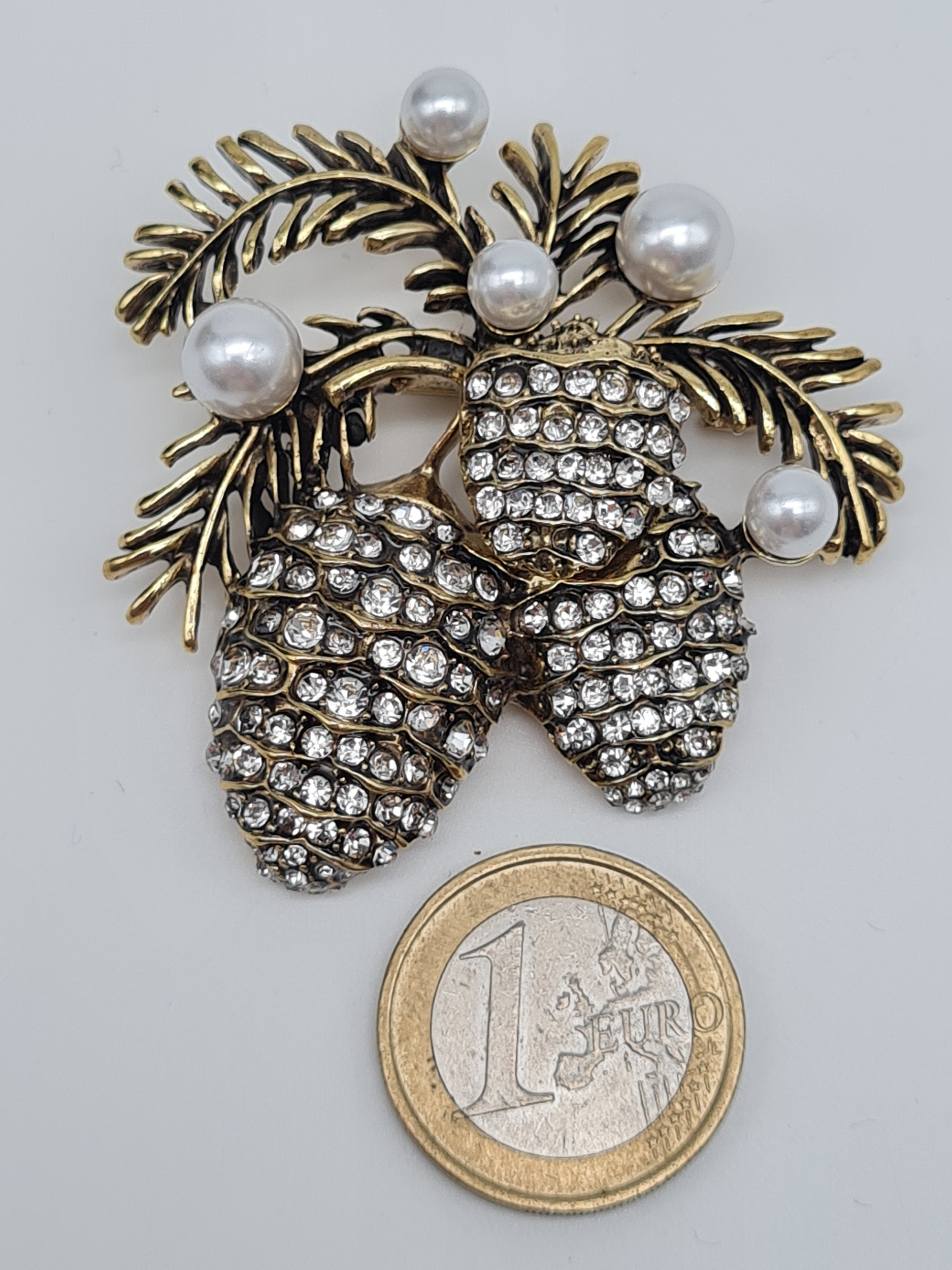 Brosche vintage brocante tannenzapfen silberfarben perlen gänseblümchen antik-look Modeschmuck