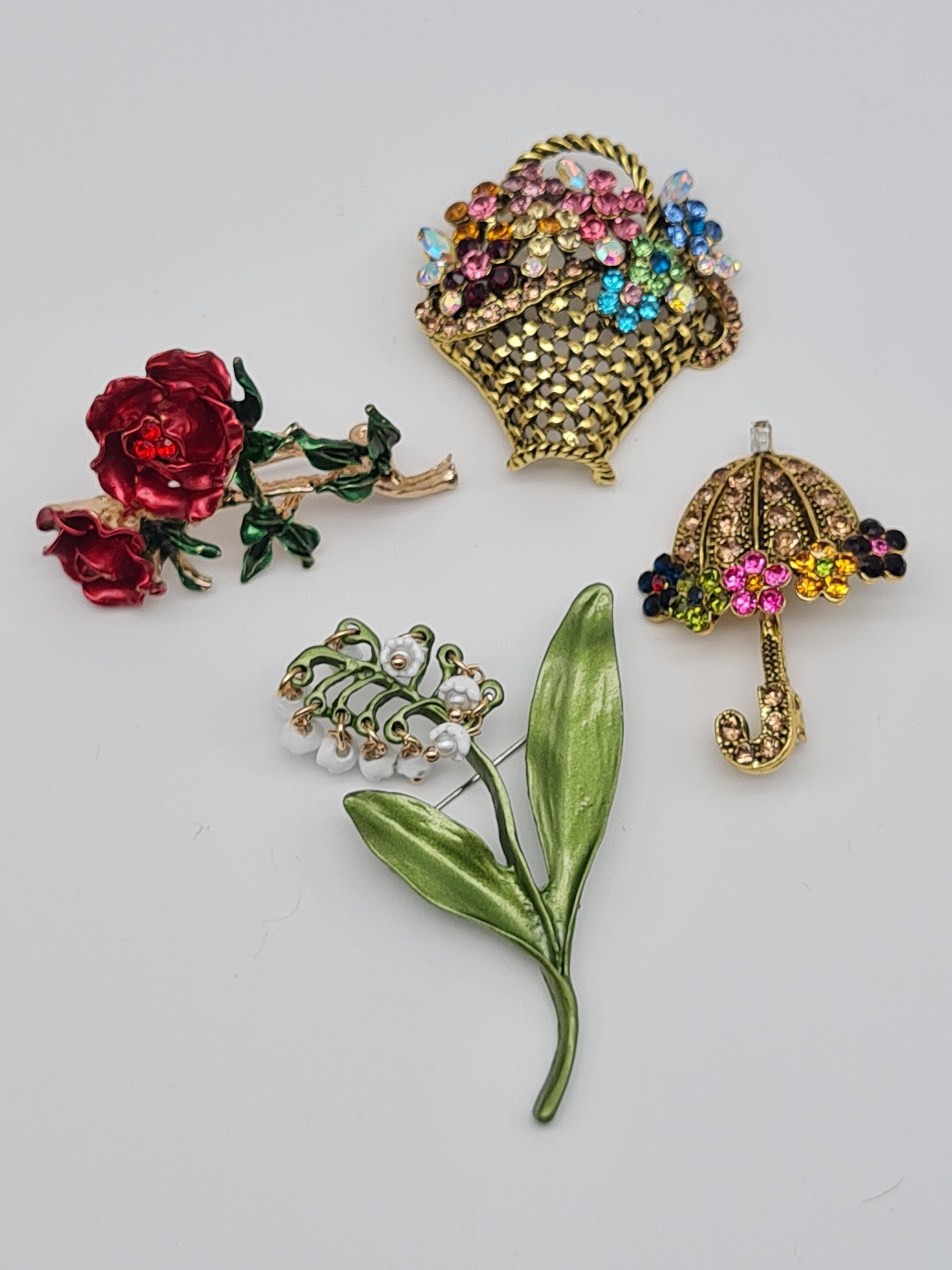 Brosche Rosen rot maiglöckchen blumenkorb blumen sonnenschirm garten natur modeschmuck