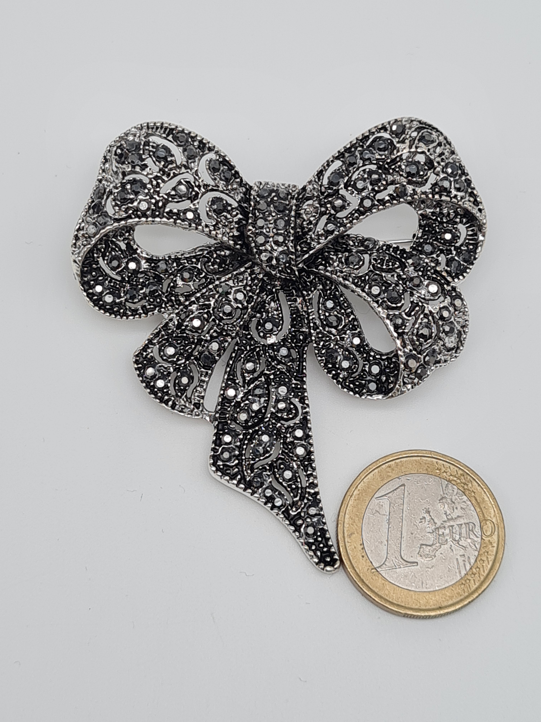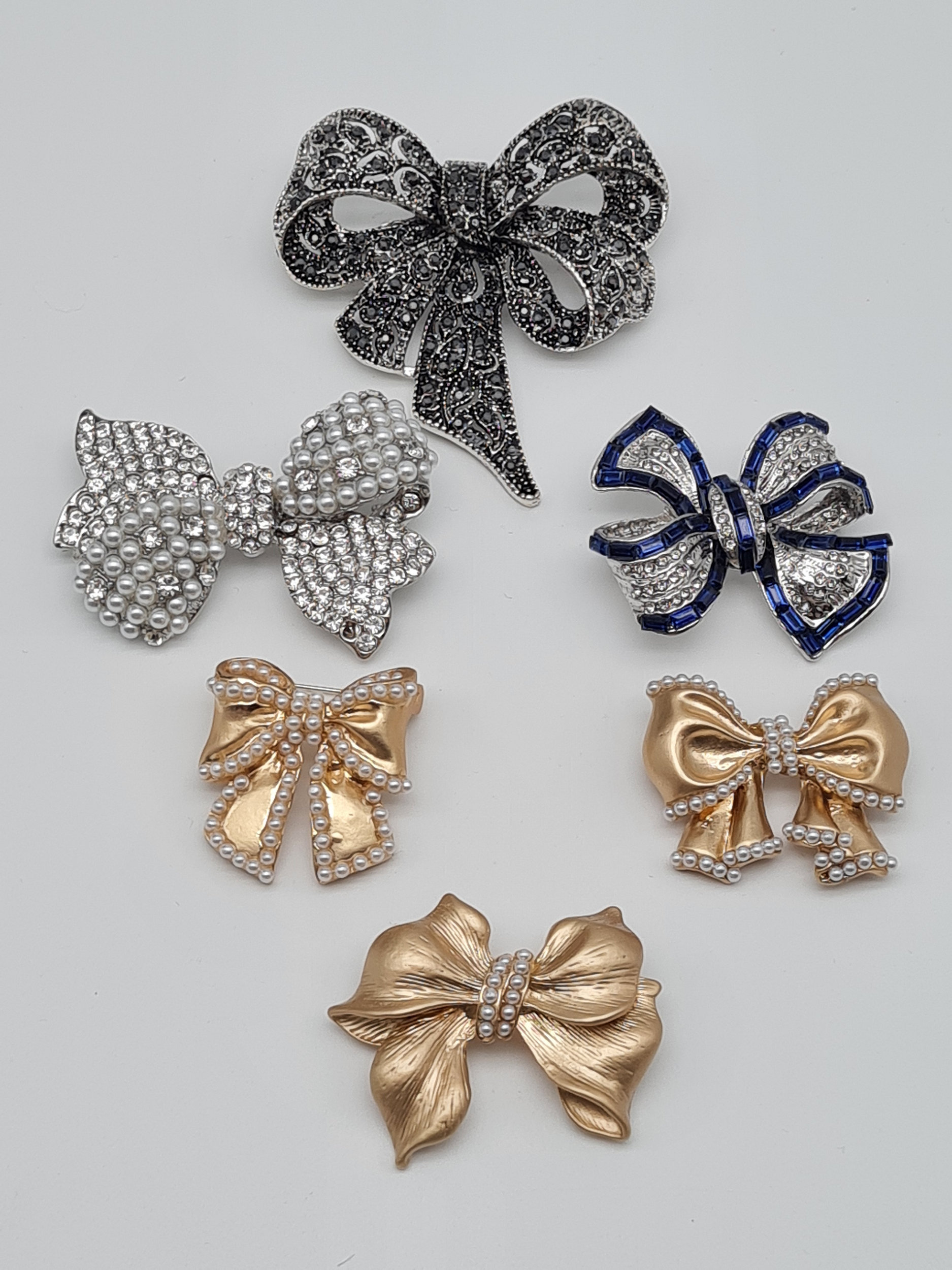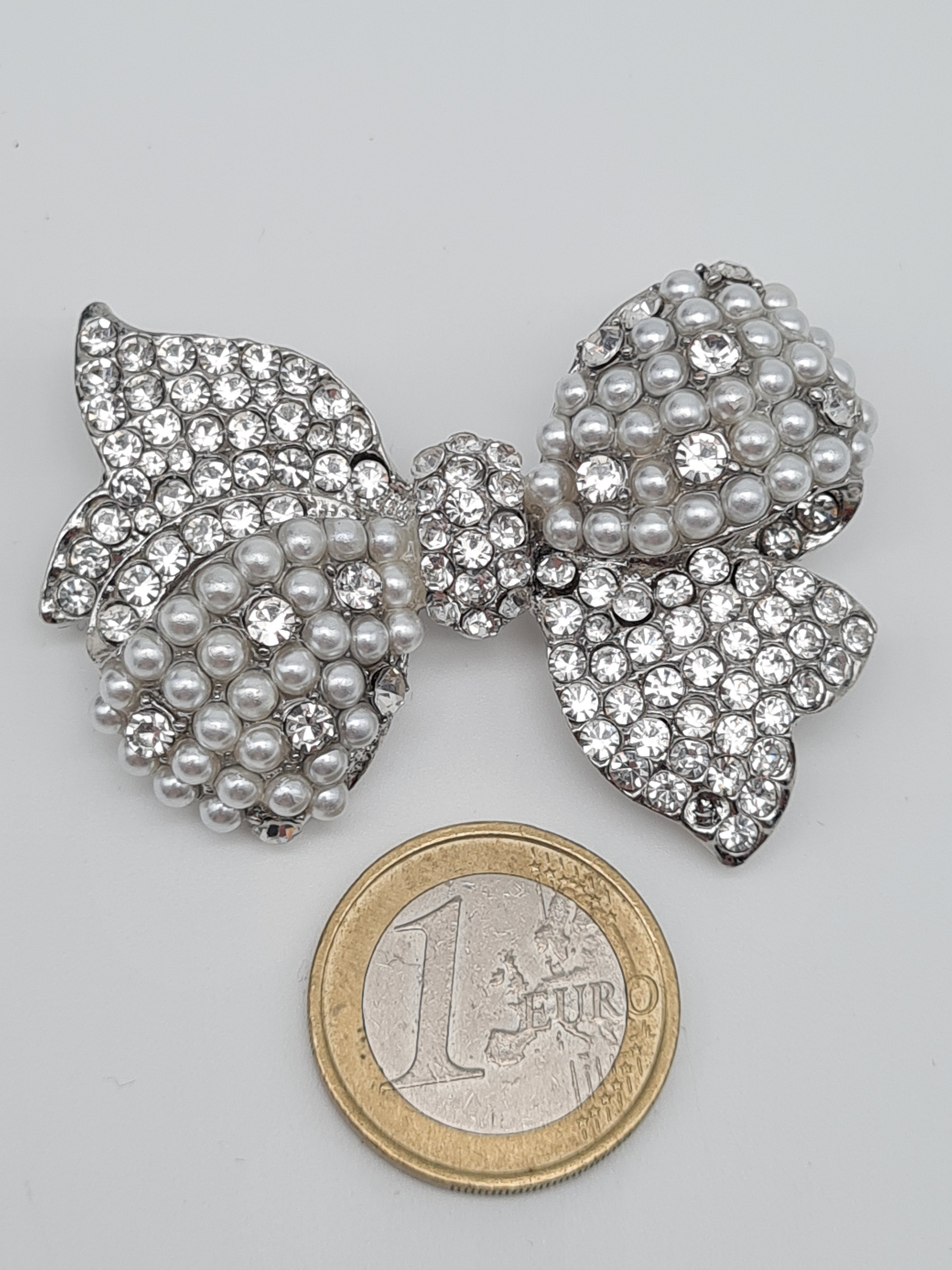 Brosche Schleife goldfarben perlen blau silber vintage luxus elegant