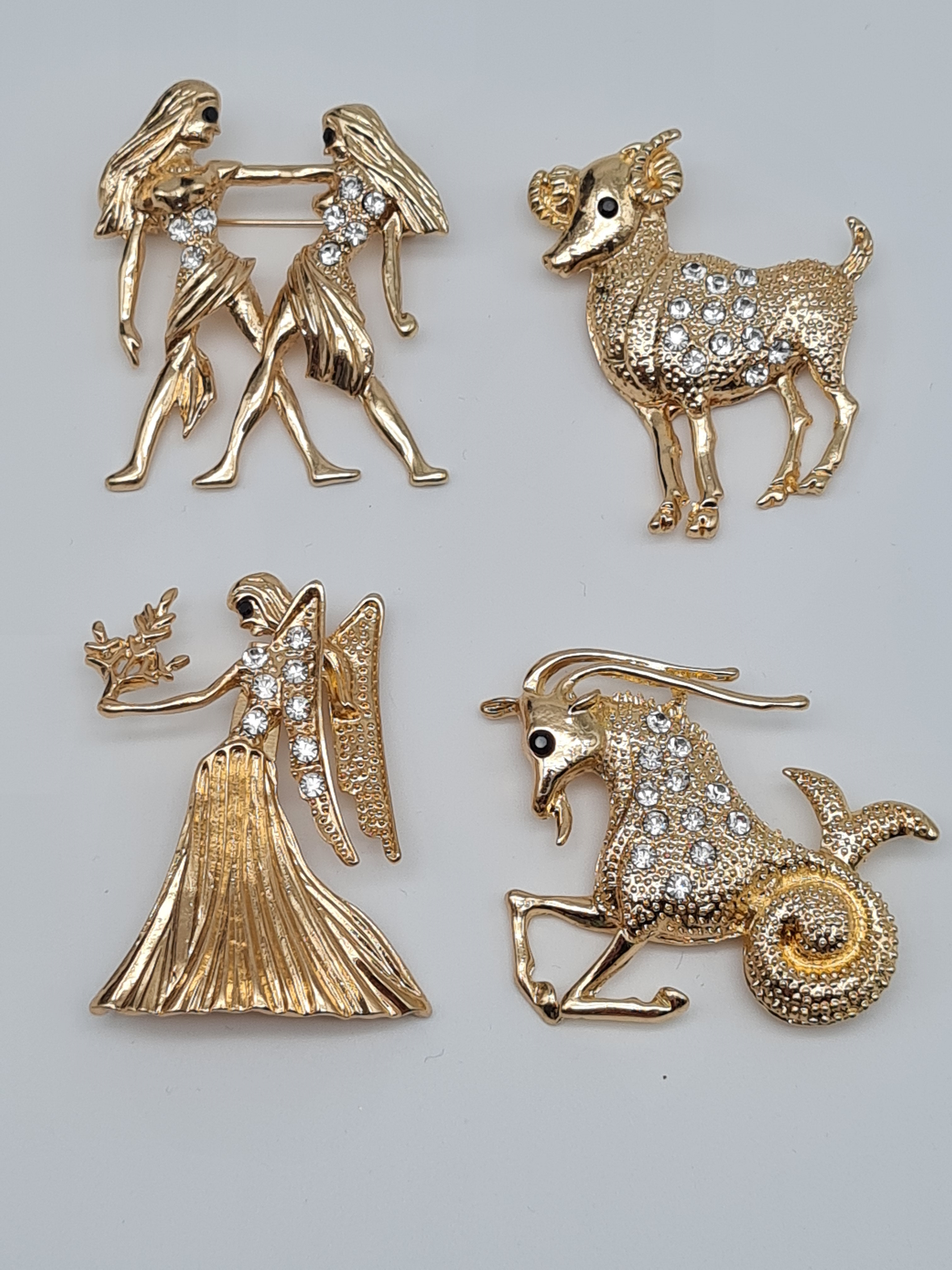 Brosche Sternzeigen goldfarben zwilling widder steinbock jungfrau abstrakt strass
