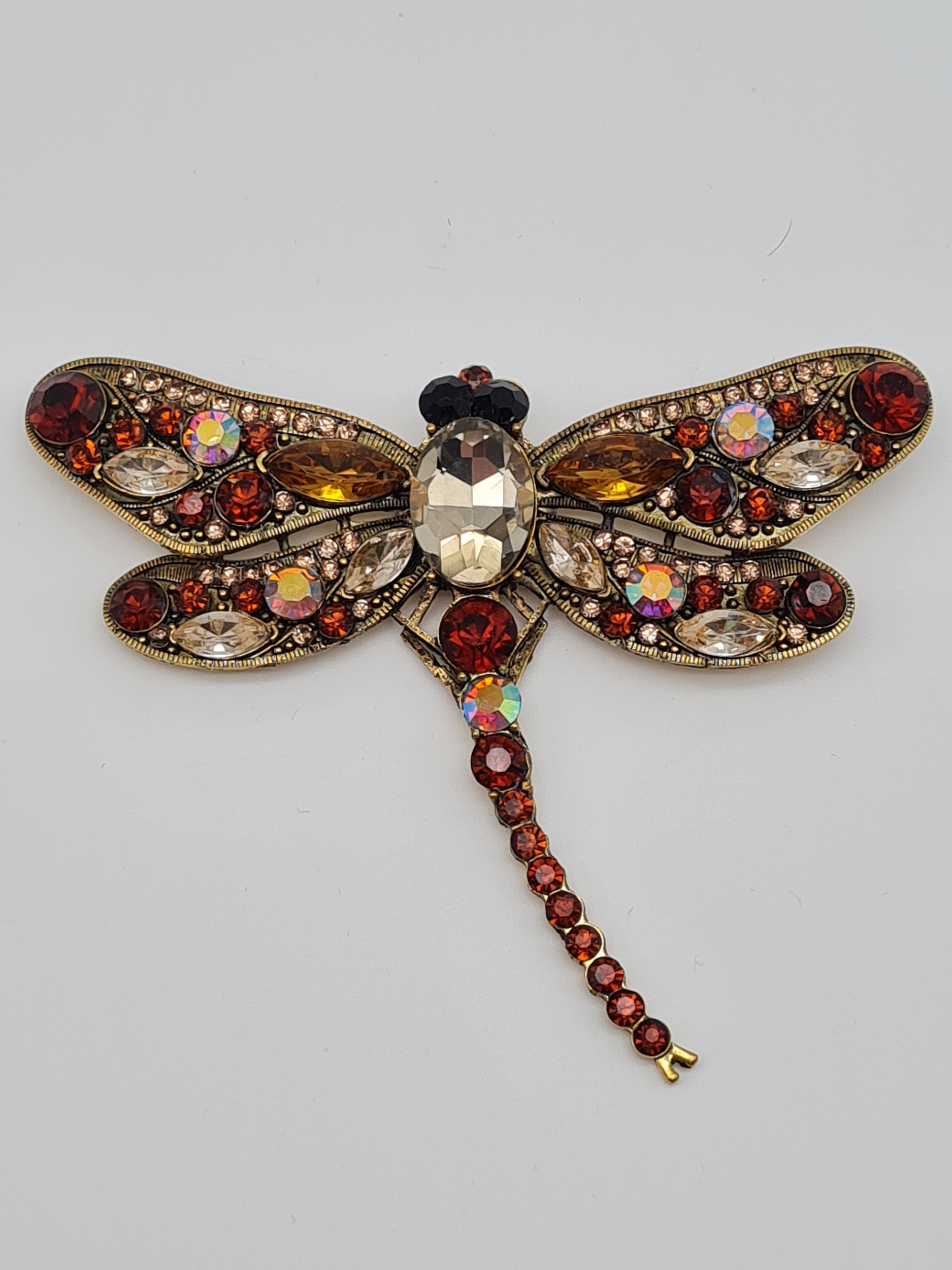 Brosche Libelle strass crystal insekt braun kaffeefarbe Teich