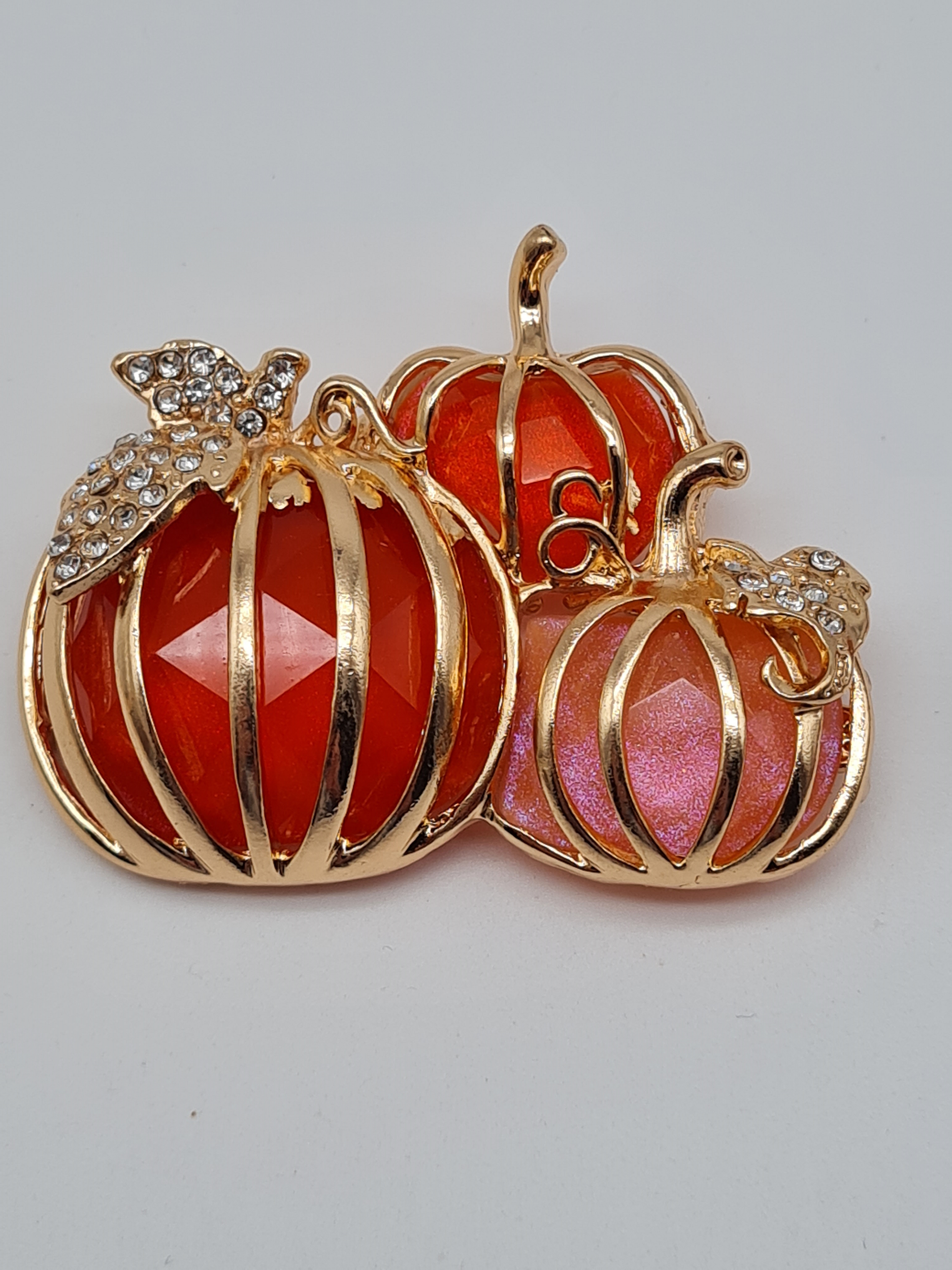 Leuchtend orange Kürbisse bringen die Farben des Herbstes stilvoll zum Ausdruck. Ob zur Halloween-Party, zum Erntedankfest oder einfach als saisonales Highlight – diese Brosche setzt verspielte Akzente und rundet jedes Outfit mit festlicher Wärme ab. 🎃🍂✨