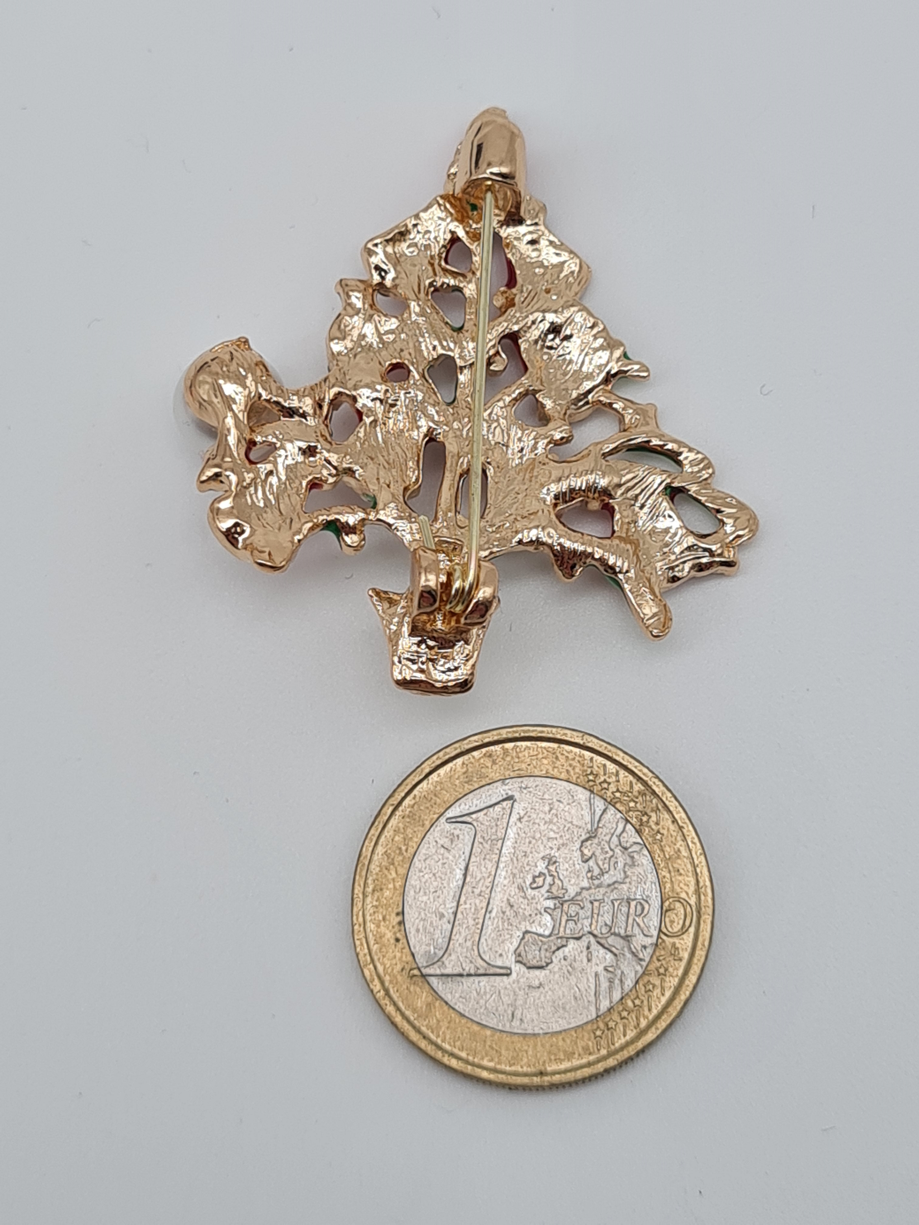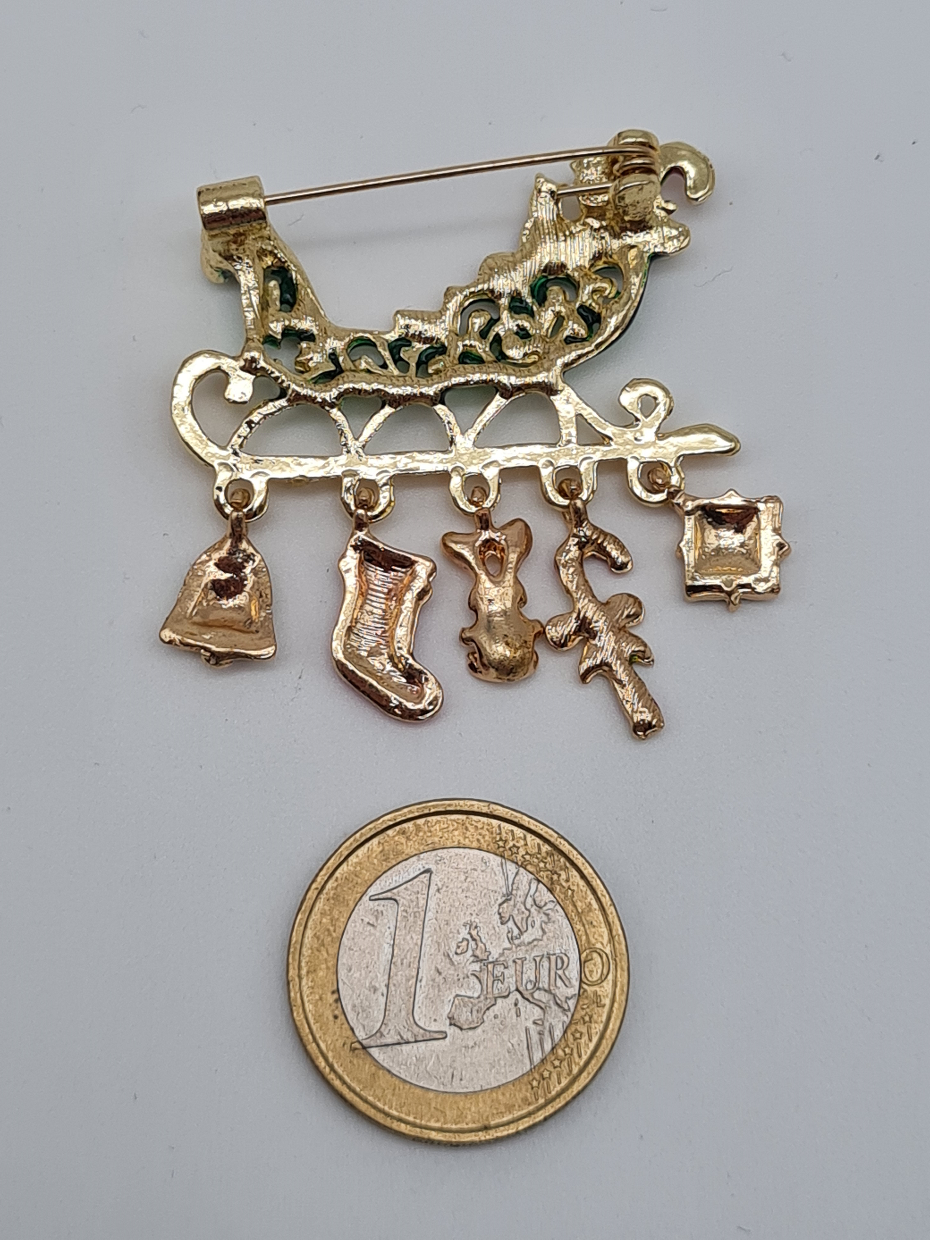 Brosche modeschmuck schneelfocke weihnachtsbaum schlitten geschenke blau rot glöckchen
