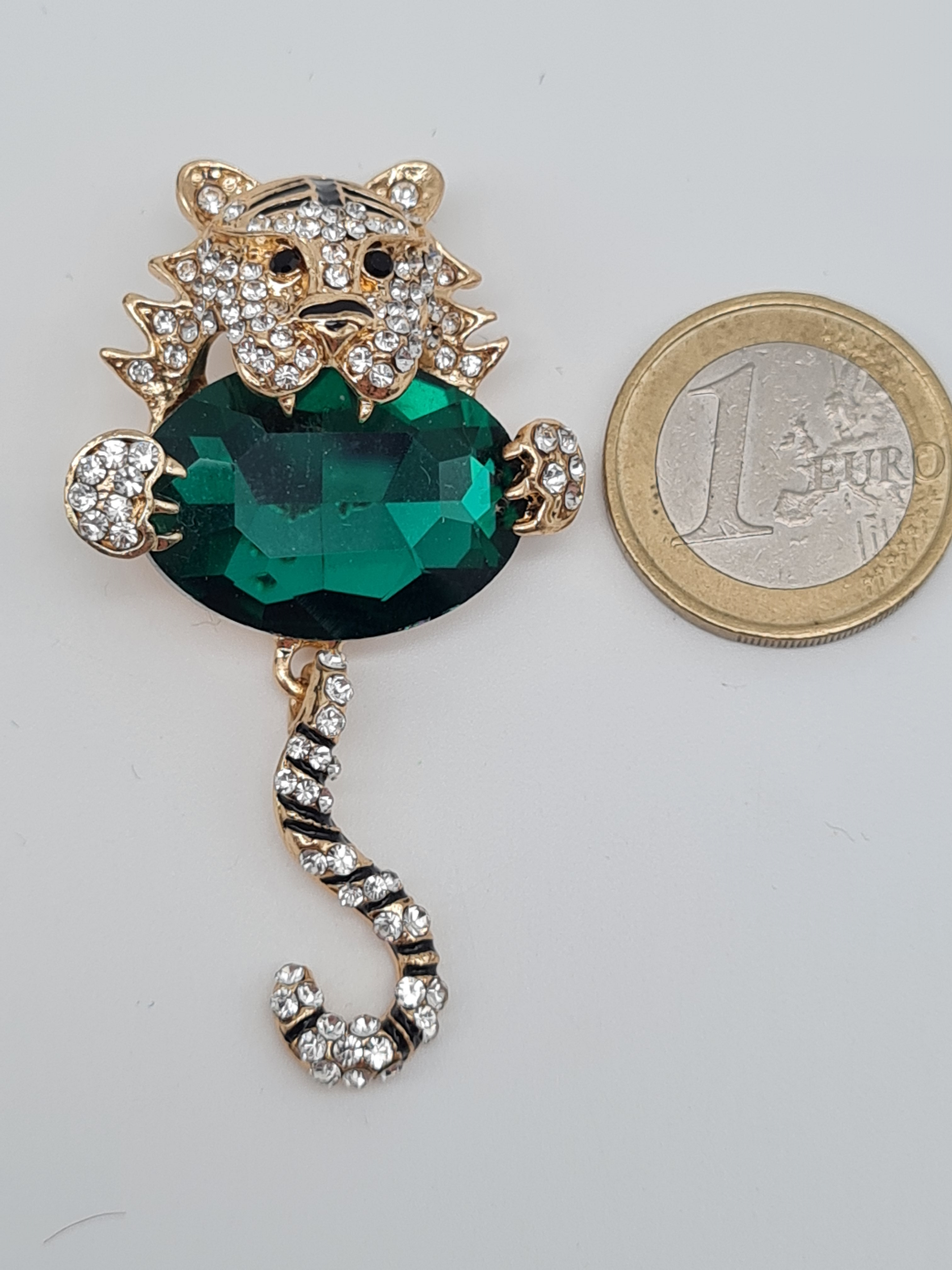 Brosche Fuchs tiger emeralda saphir strass tiere wald modeschmuck
