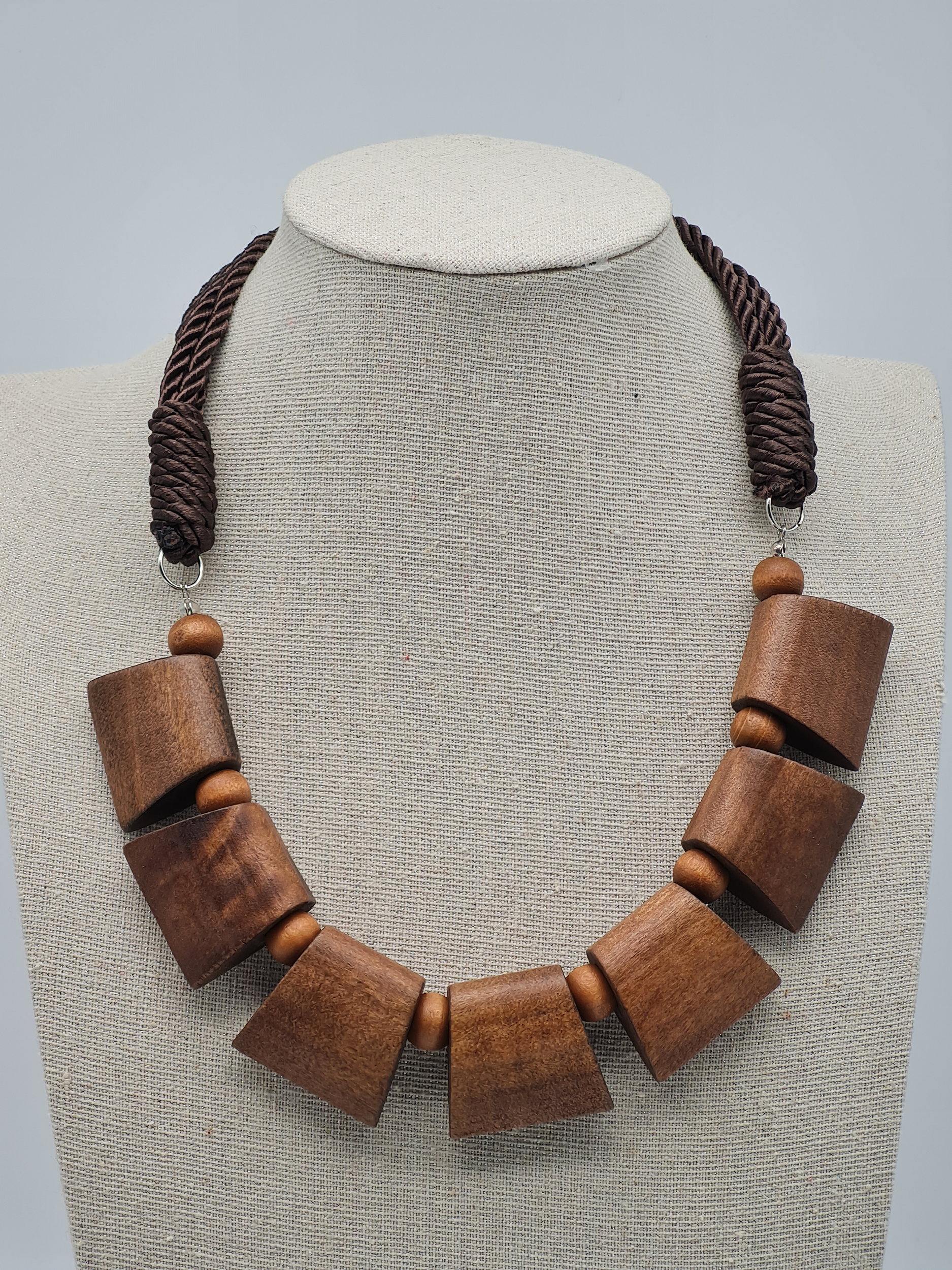 Cosmos Halskette nickelfrei braun holzelementen kordel natur elegant stilvoll