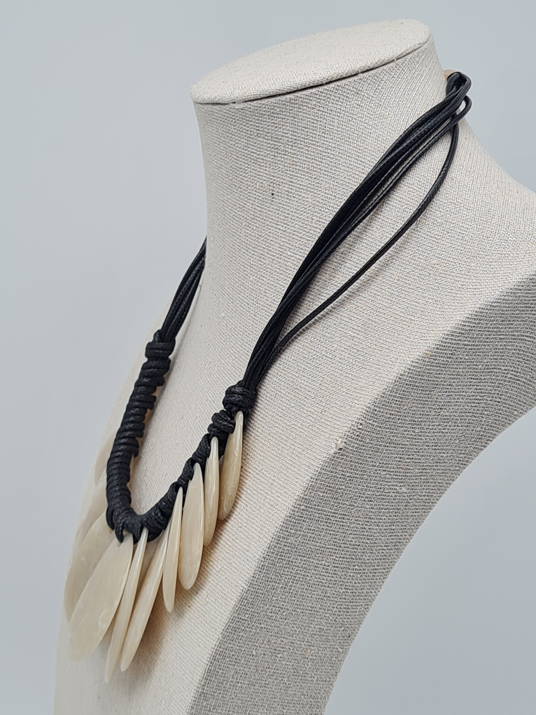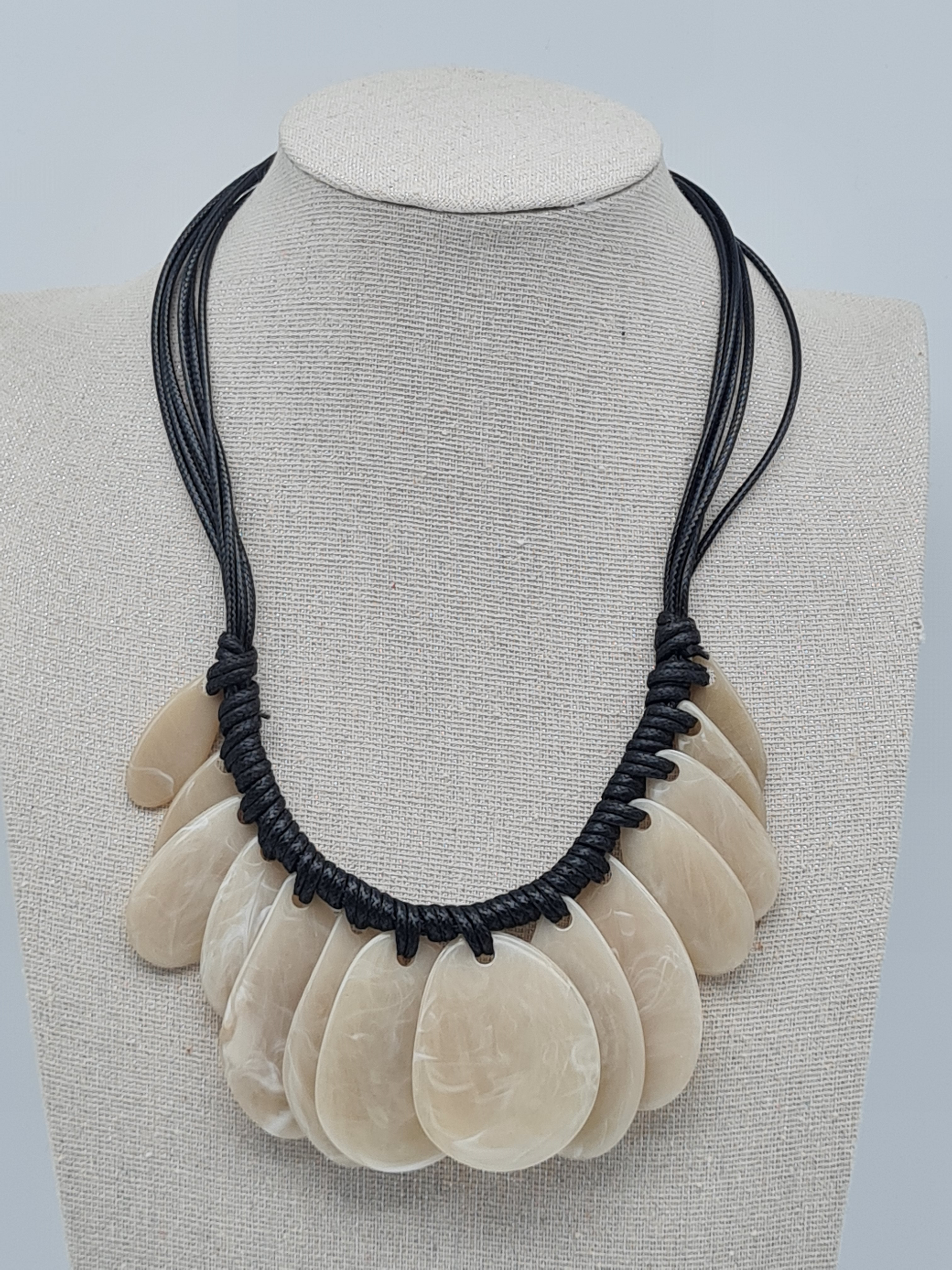 Cosmos Halskette nickelfrei Kunstleder Acryl Beige Creme Schwarz neutral elegant verspielt