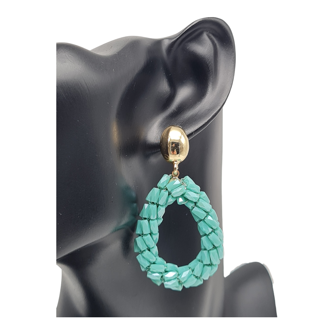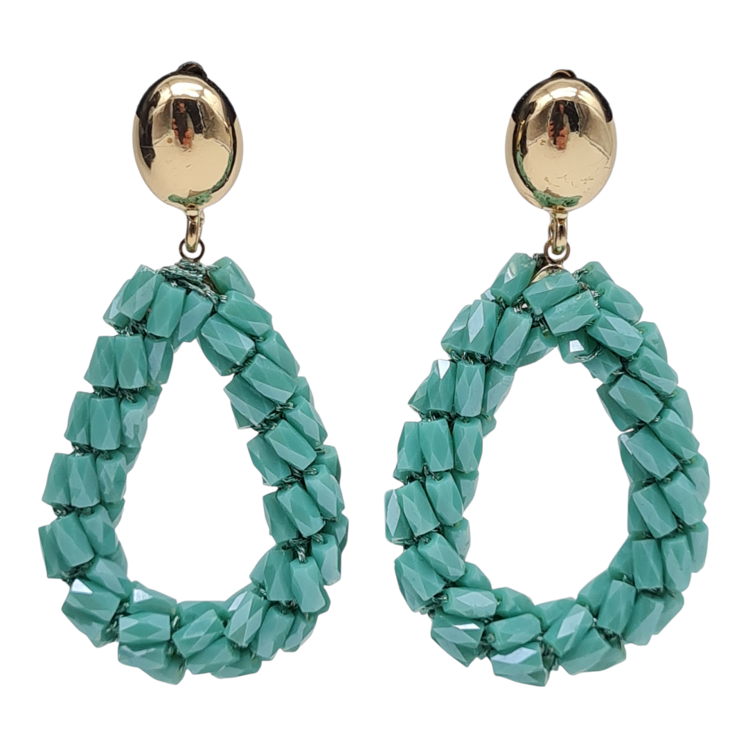 Mit einer Größe von 5,5 x 3 cm wirken die Ohrhänger ausdrucksstark, ohne aufdringlich zu sein – perfekt für besondere Anlässe oder als eleganter Blickfang im Alltag. Die Kombination aus warmem Goldton und leuchtendem Türkis sorgt für zeitlose Eleganz und einen Hauch von Luxus.