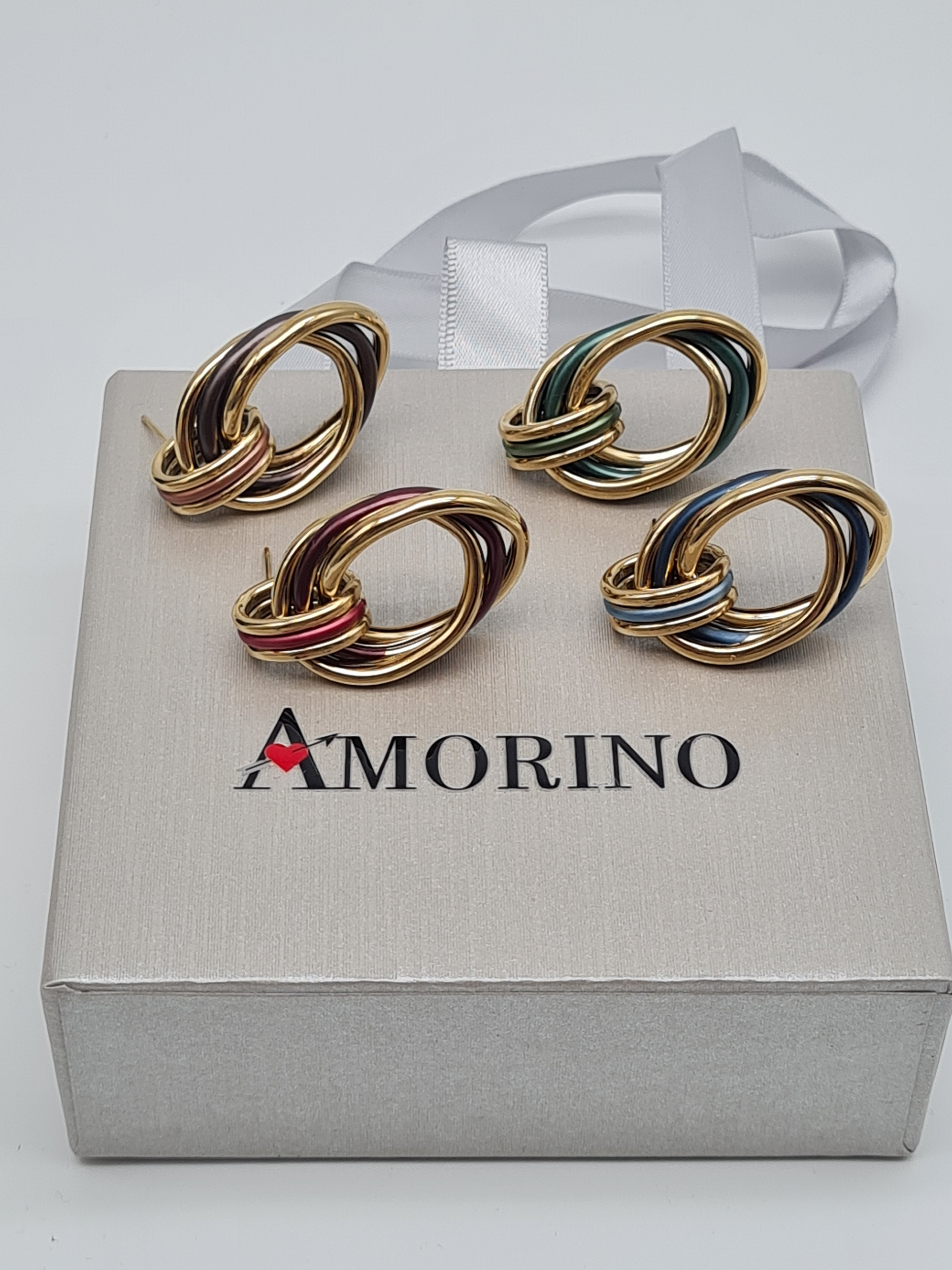 Amorino EMAILLIERTE OHRRINGE MIT DREIFACHEM KREISANHÄNGER nickelfrei