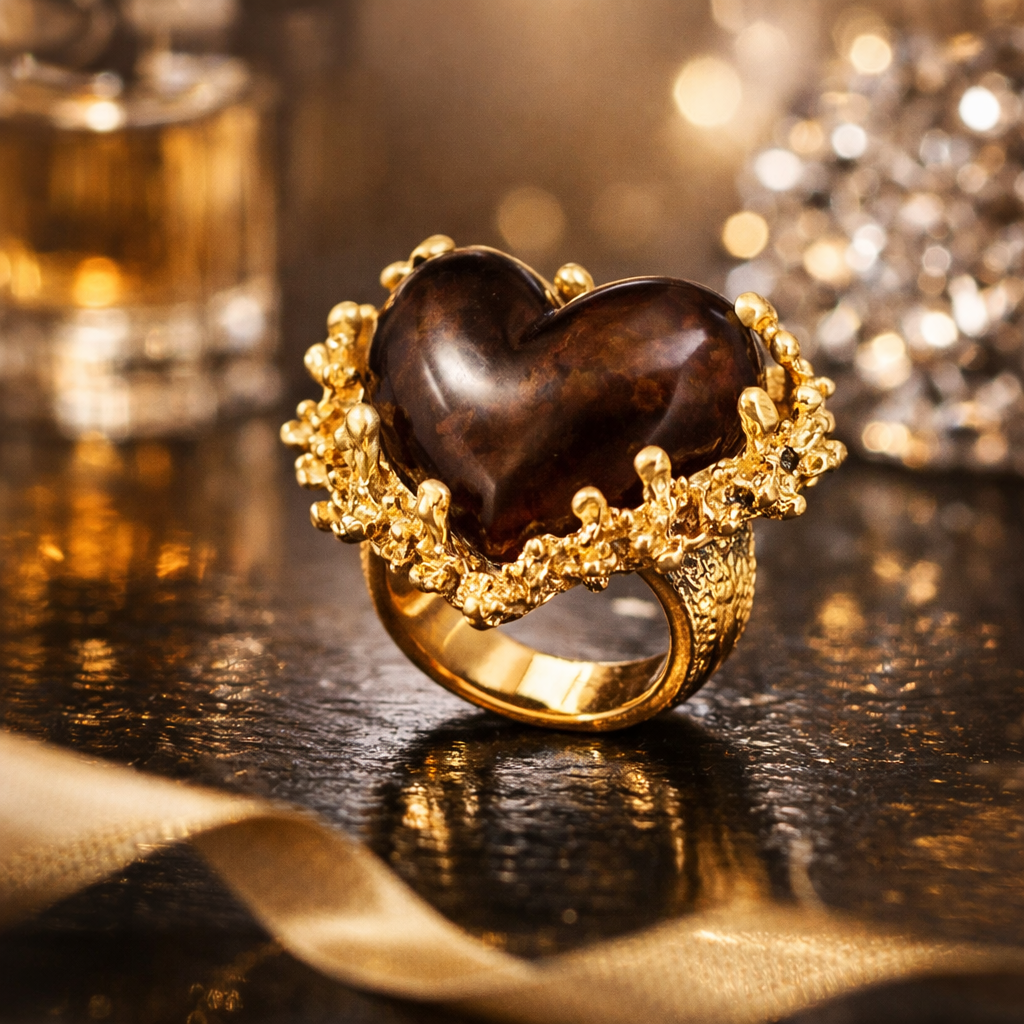 PRODUKTCODE: NY24108B883 MATERIAL: Metall Zinklegierungen, Harz GRÖSSE: Elastisch OBERFLÄCHENGRÖSSE: 4,3x4,7 cm PRODUKTBESCHREIBUNG • Außergewöhnliche Rhodinierung. • Romantischer und retro Stil, mit einem großen, herzförmigen, farbigen Harzstein, umgeben von einem goldenen, von Korallen inspirierten Ornament. Die organischen Details betonen die Raffinesse und die materielle Fülle des Designs. ENTWORFEN, UM KOMFORTABEL UND EINFACH ZU TRAGEN ZU SEIN Unsere Produkte werden in Übereinstimmung mit den Beschränkungen für Nickel, Blei und Cadmium hergestellt, in voller Übereinstimmung mit den geltenden Vorschriften.