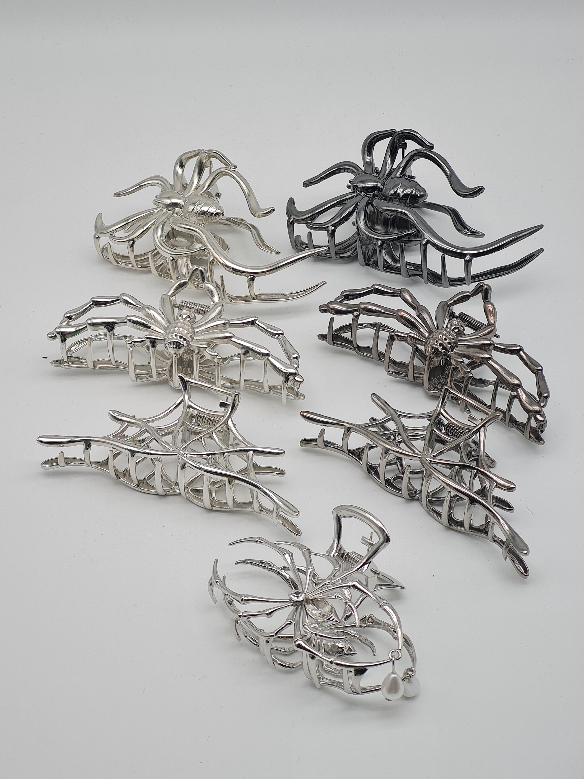 Sensibling Corp. Haarklammer Halloween Spinnen Spinnennetz Gun Metal Silberfarben