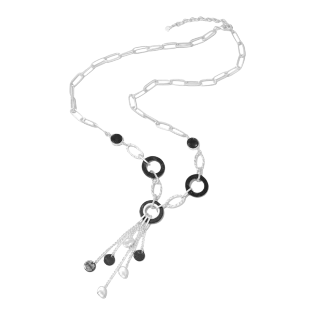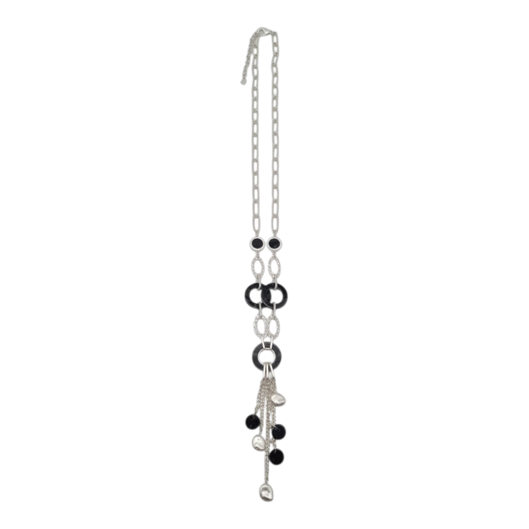 Halskette Langkette Matt silberfarben mit Schwarze Elemente Nickelfrei Sweet7