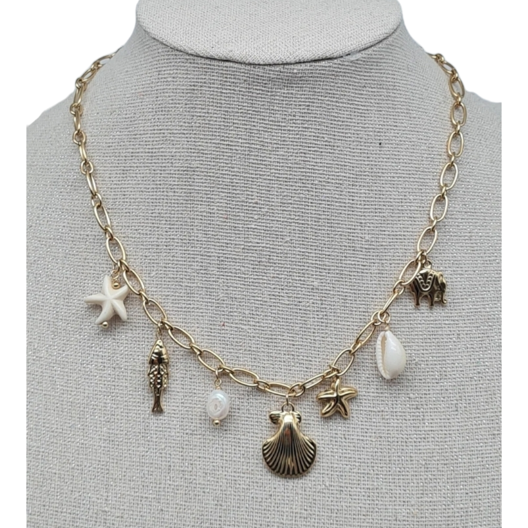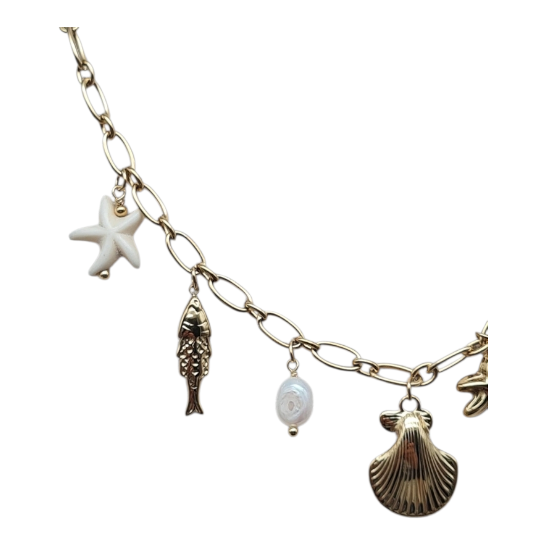 Halskette Kurzkette Süßwasserperle Charms Meer Seestern Nickelfrei Sweet7