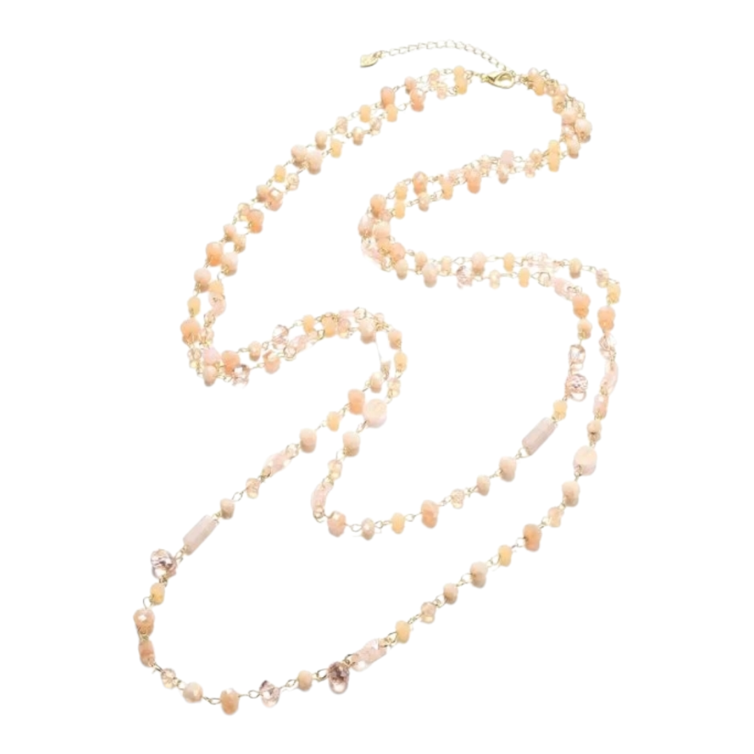Halskette Doppel Langkette Rosenquarz Rosa Elementen Nickelfrei Sweet7
