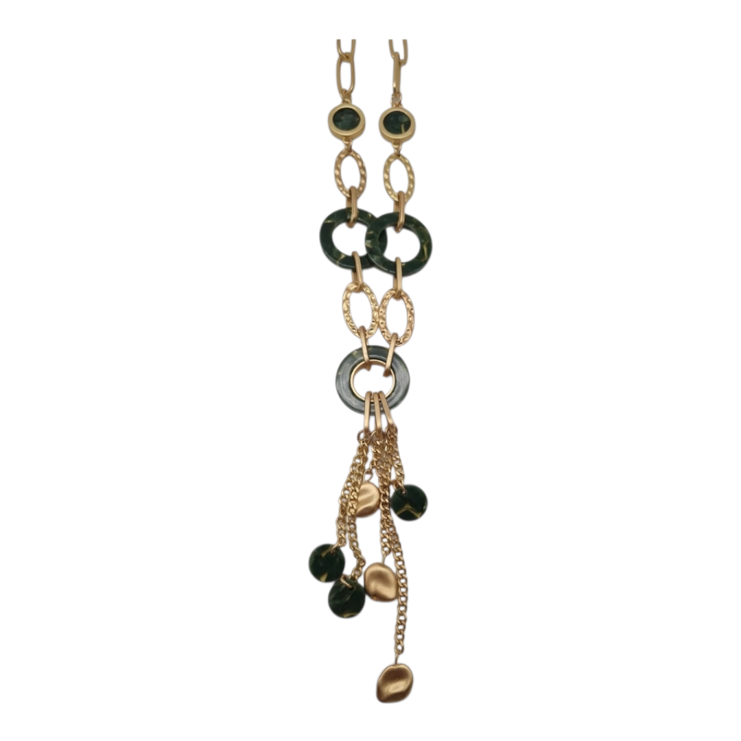 Halskette Langkette Matt Goldfarben mit Grüne Elemente Nickelfrei Sweet7