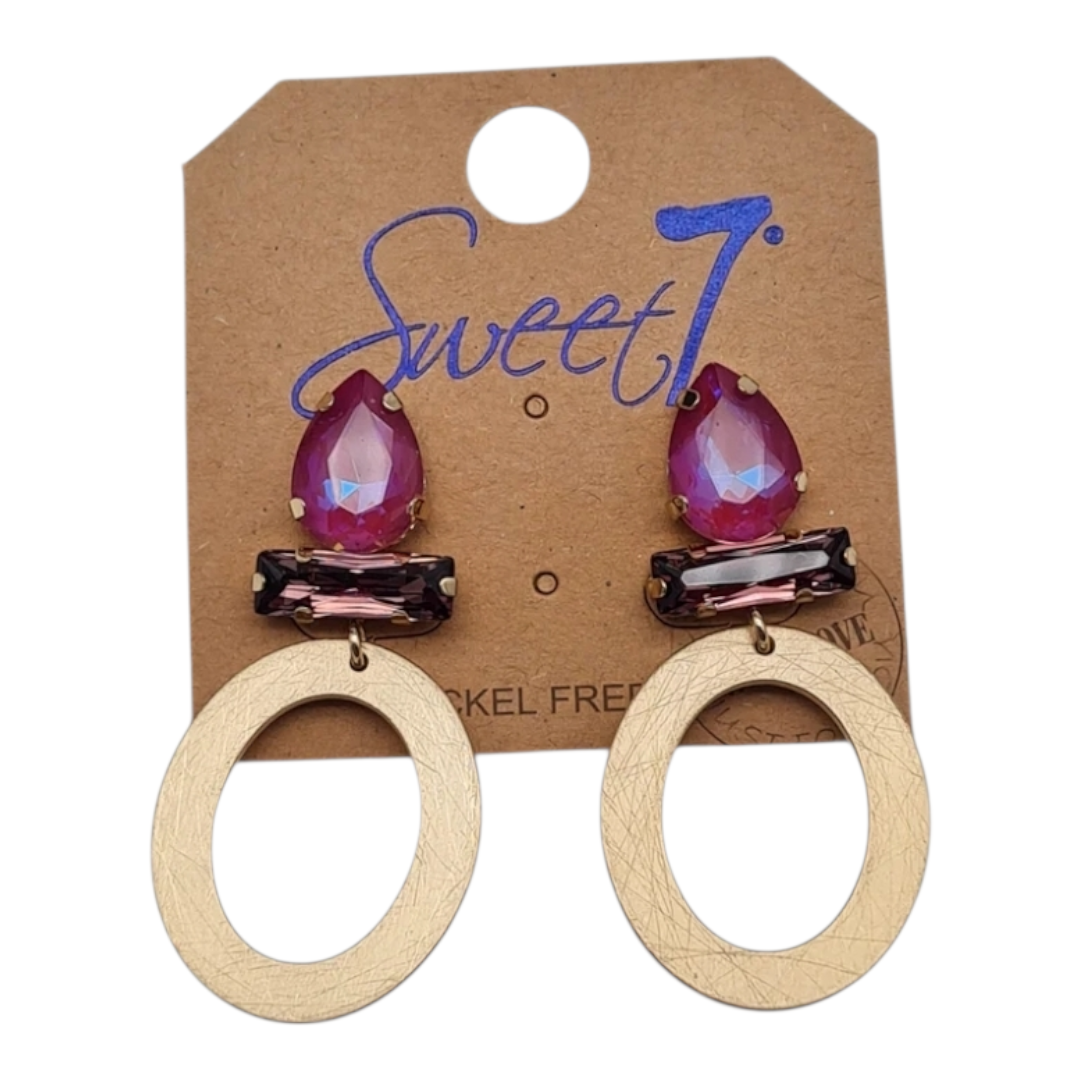 Ohrringe Ohrhänger Gold Mattfarben Pinker Strass Nickelfrei Sweet7