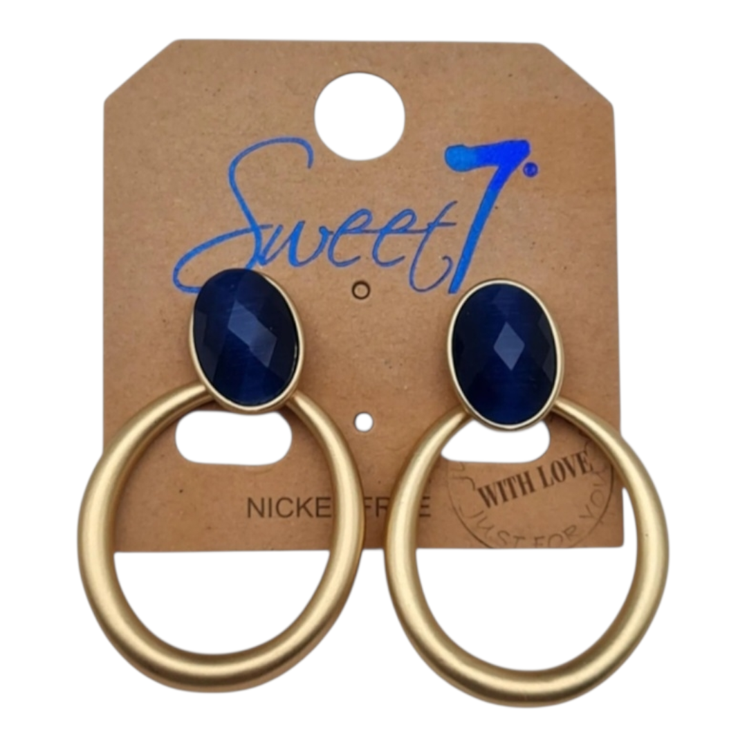 Ohrringe Ohrhänger Matt goldfarben Kobaltblaue Stein Nickelfrei Sweet7