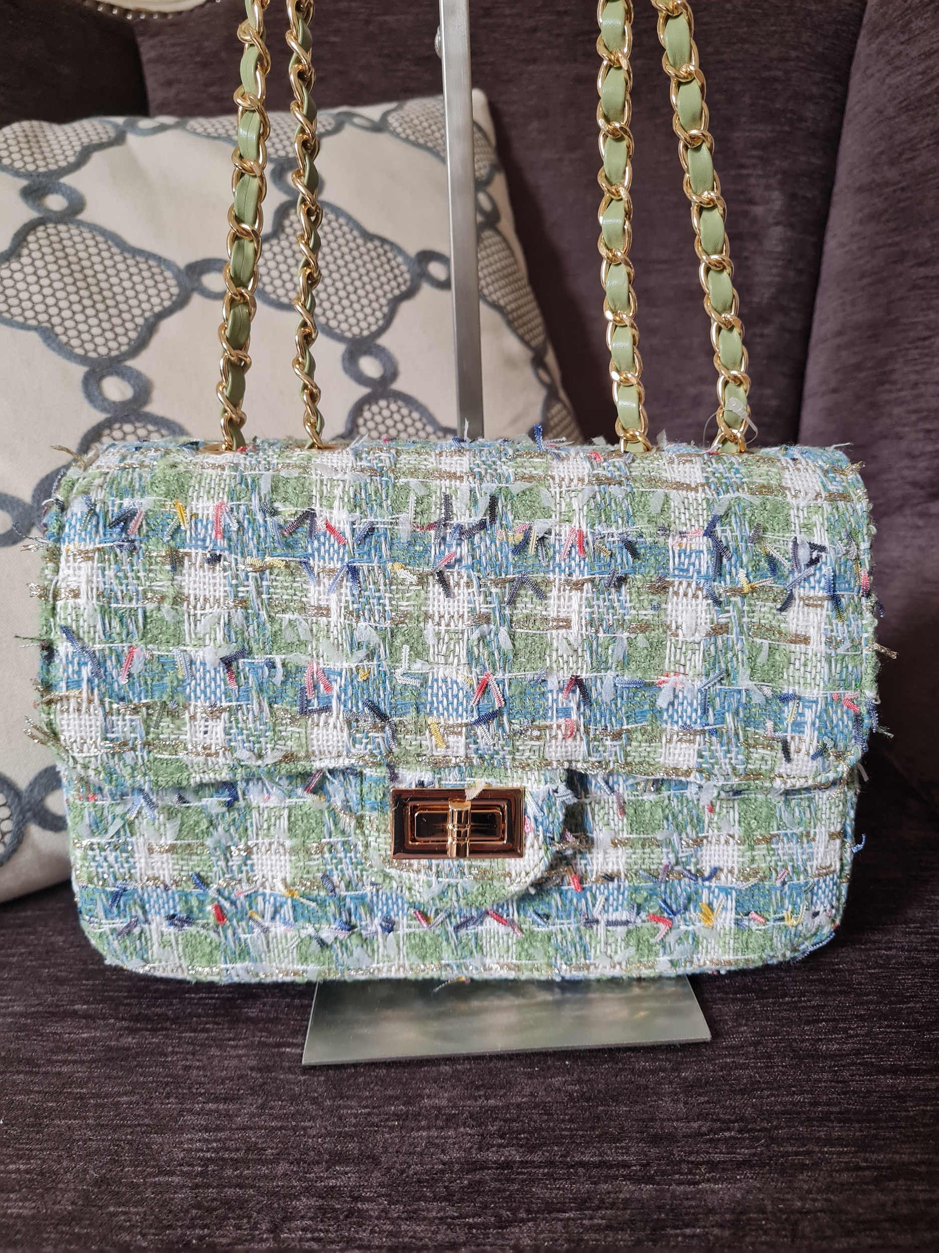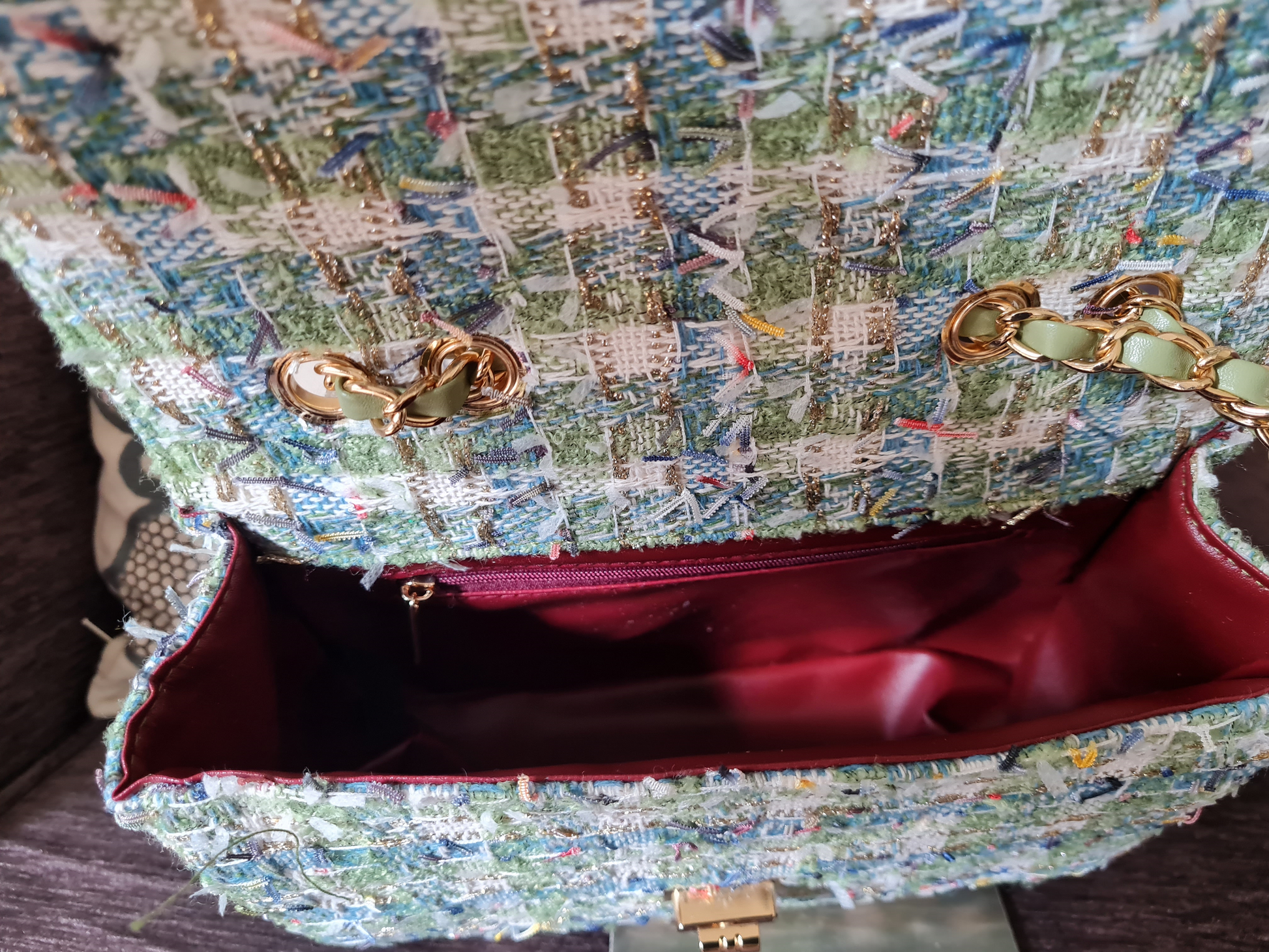 Umhängetasche Tweed Grün Pastell Crossbody trend modisch