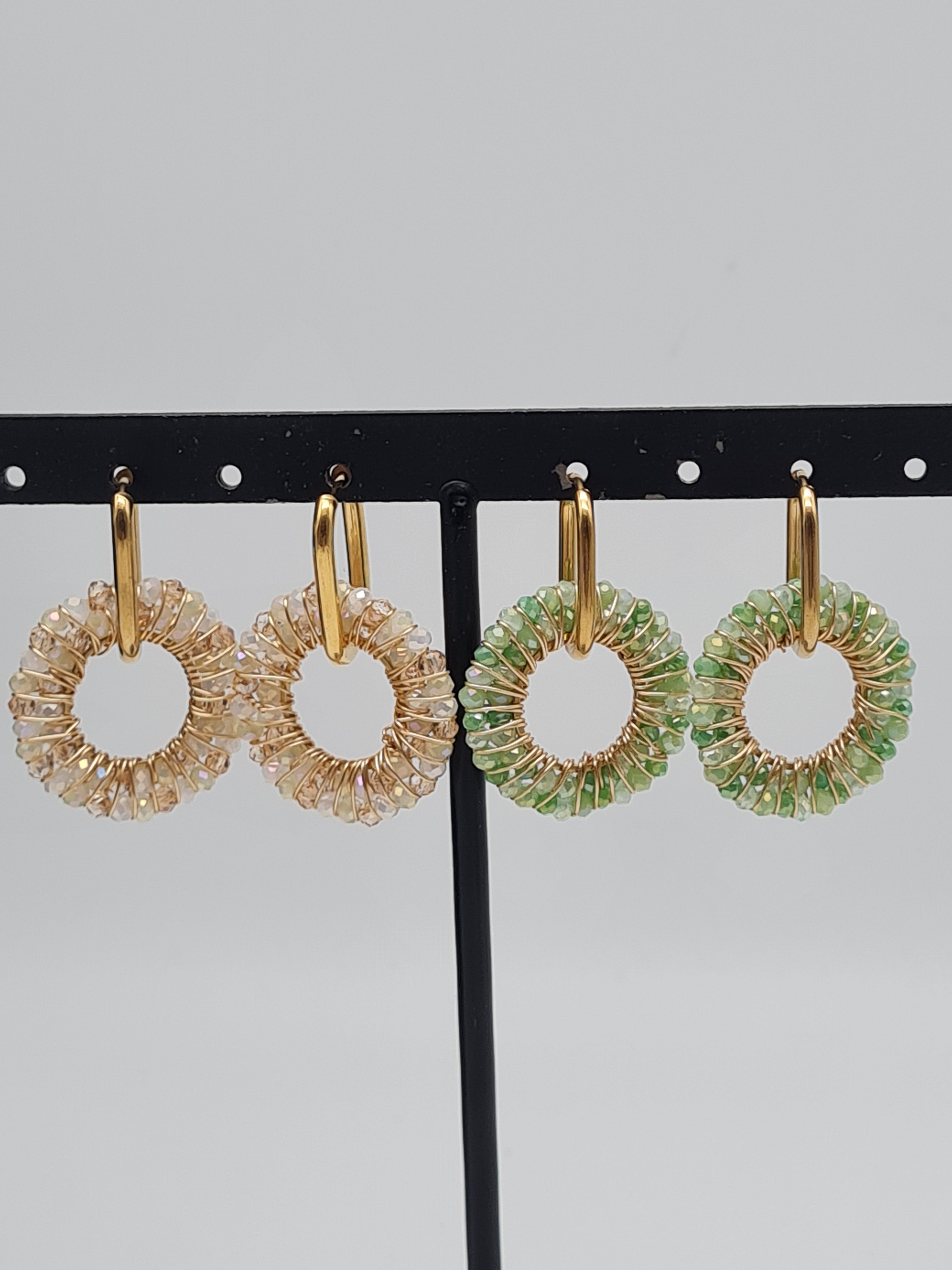 Wauw Creolen „Crystal Circle“ – funkelnde Eleganz in Hellgrün oder Beige