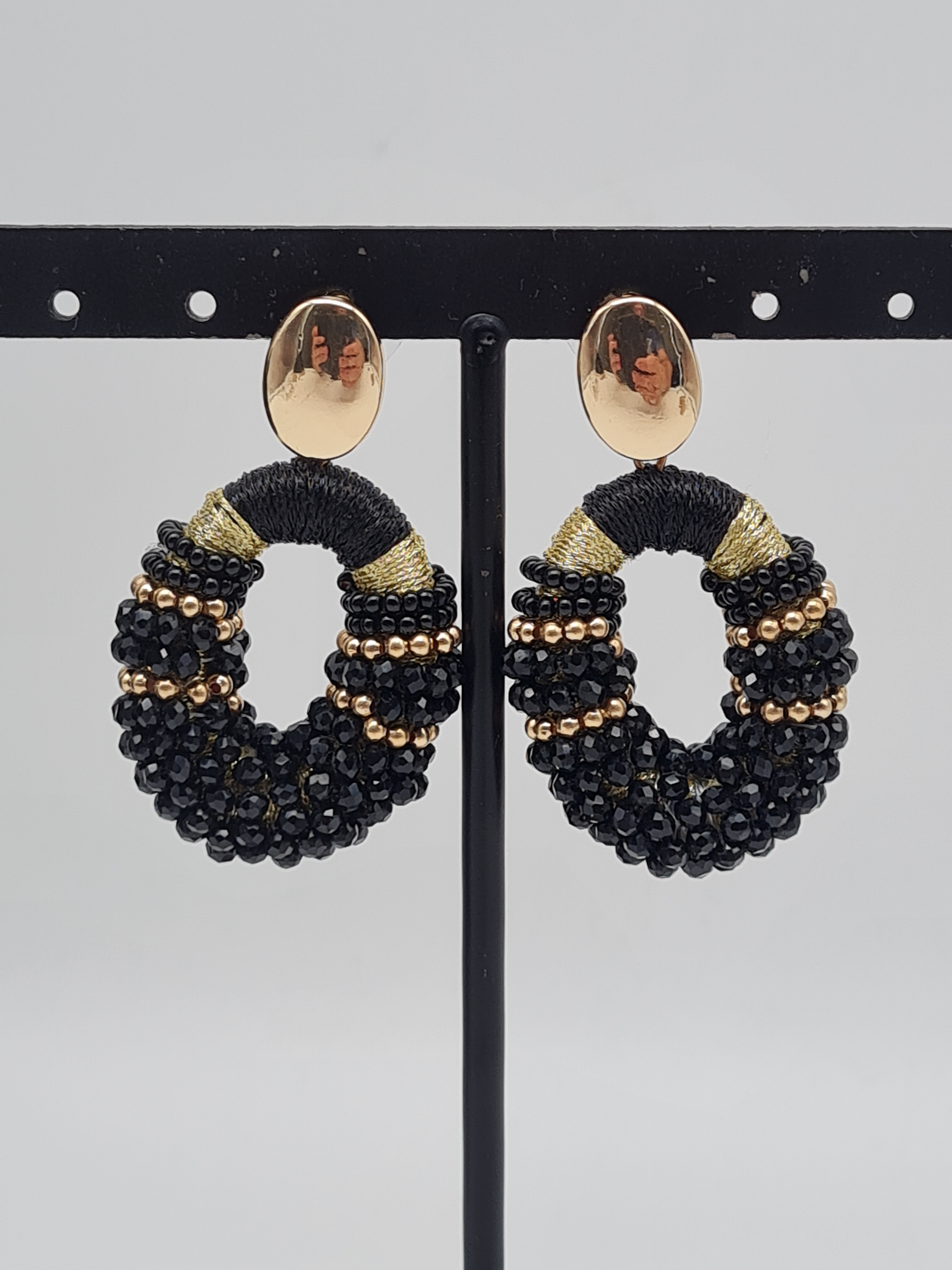 Elegante Ohrringe in Goldfarben mit markanter Ovalform in Schwarz-Gold-Optik.