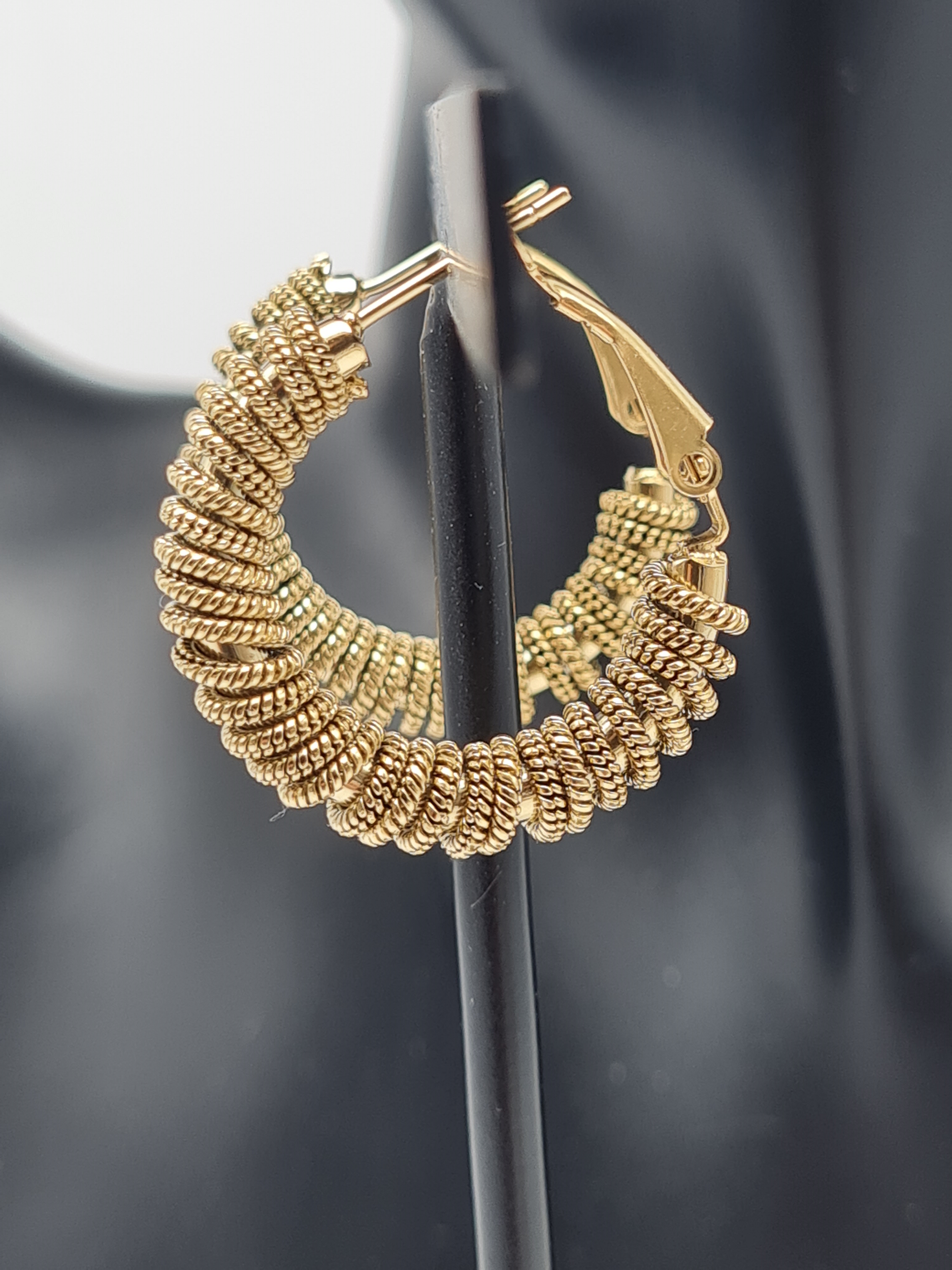 Diese runden Creolen in edler Goldfarbe sind mit einer feinen, goldfarbenen Kette umwickelt und vereinen modernes Design mit luxuriöser Ausstrahlung. Ein elegantes Statement-Piece, das jedem Look eine stilvolle Note verleiht. Dank Nickelfreiheit angenehm zu tragen – perfekt für Alltag, Business und besondere Anlässe. ✨💛🔗