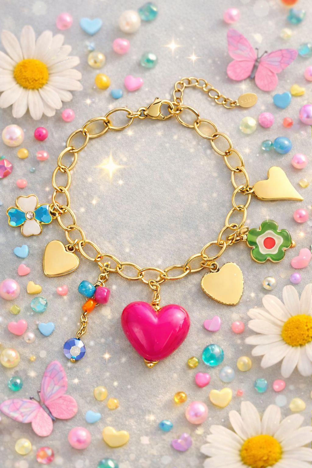 Armband Bettelarmband "Big Pink Love" Goldfarben Liebe Romantik Geschenk Yehwang