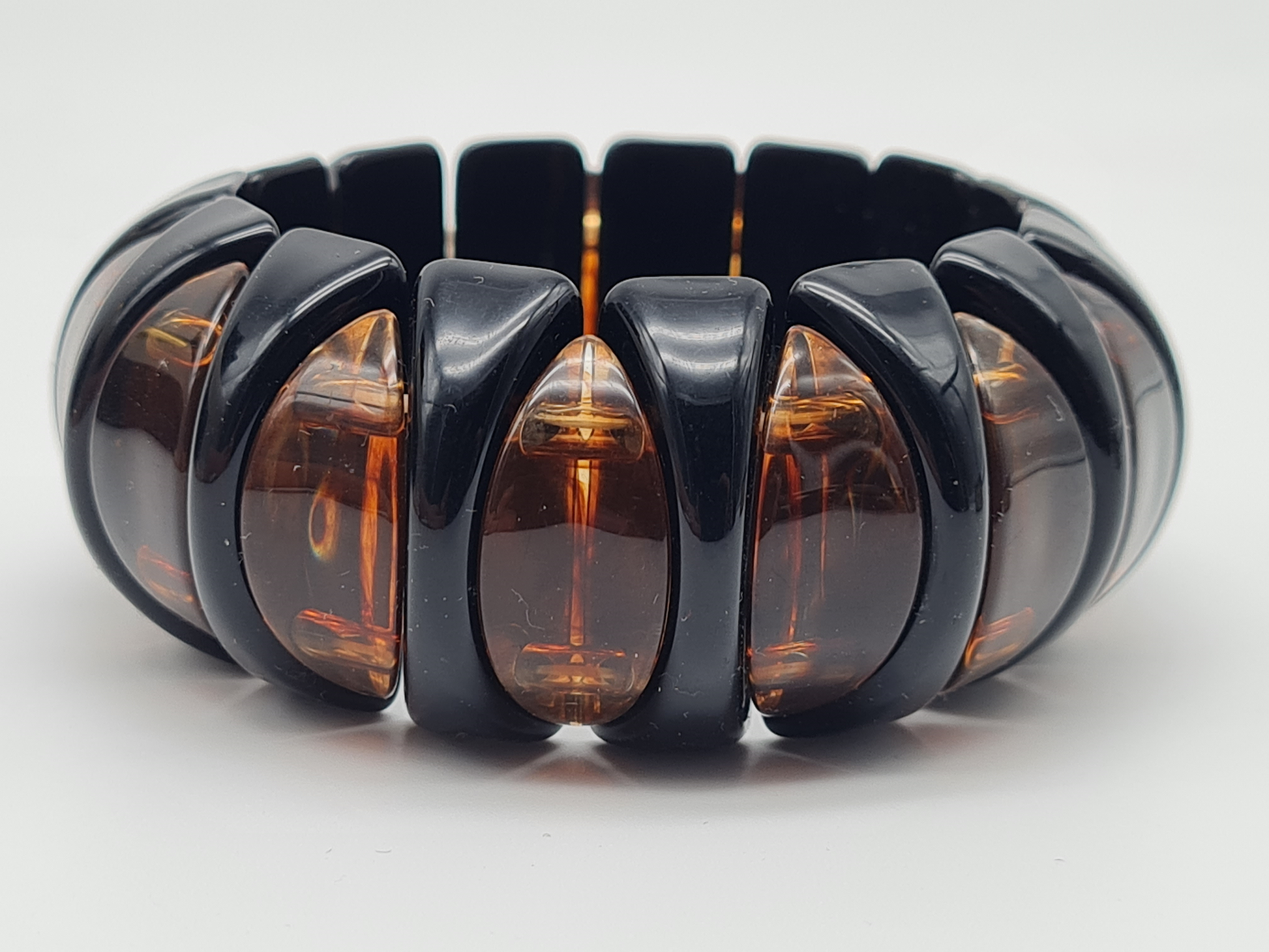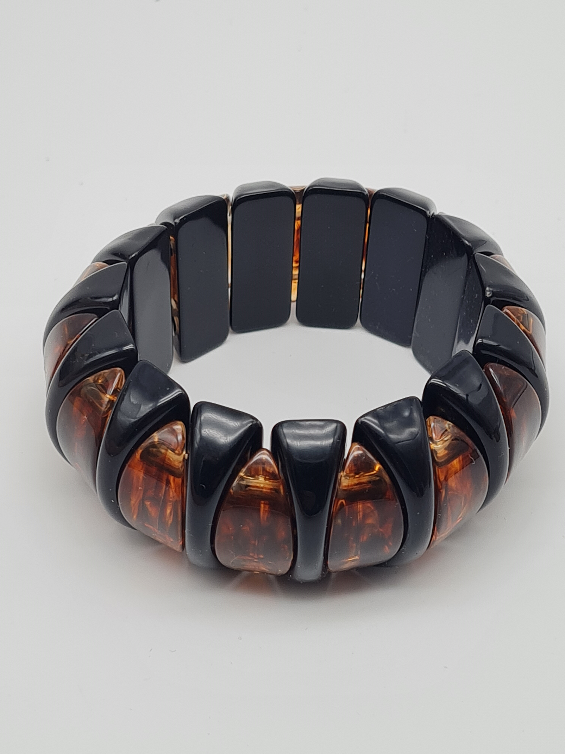 Armband elastisch Retro nickelfrei Acryl Braun schwarz creme Rauchbraun